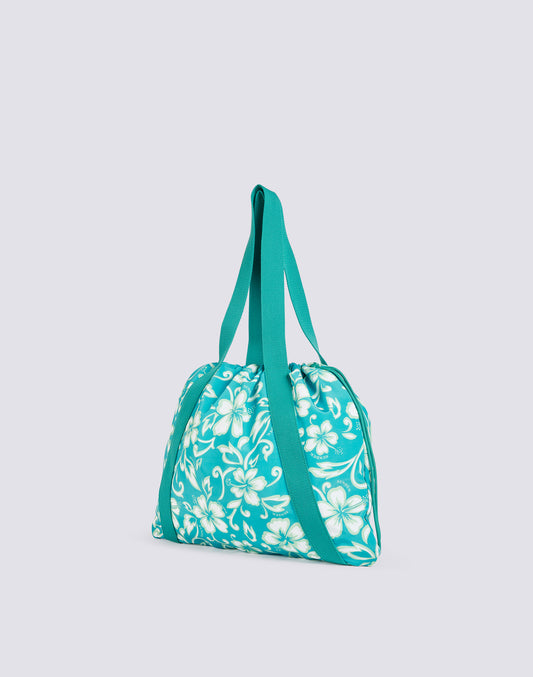 AVA - NYLON BAG WITH HANDLES AND STRINGS HIBISCUS PRINT SK23