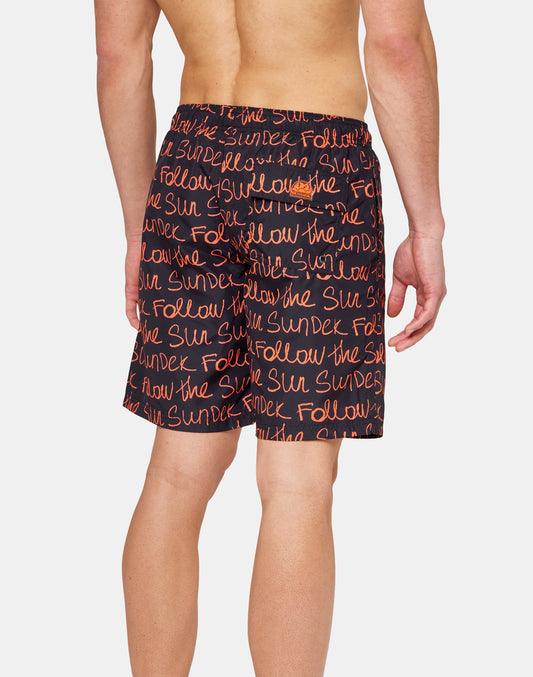 LONG SWIM SHORTS WITH AN ELASTICATED WAISTBAND FOLLOW THE SUN PRINT