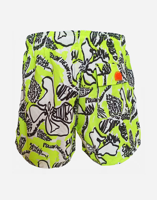 MID-LENGTH SWIM SHORTS WITH AN ELASTICATED WAISTBAND
