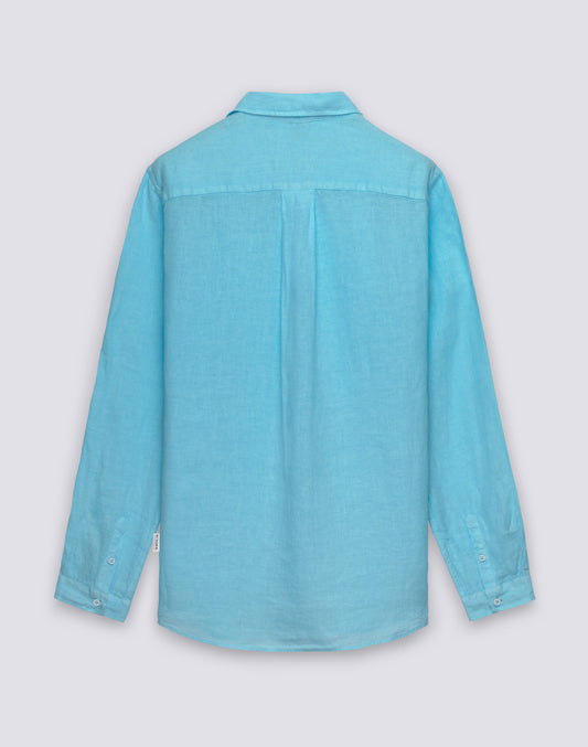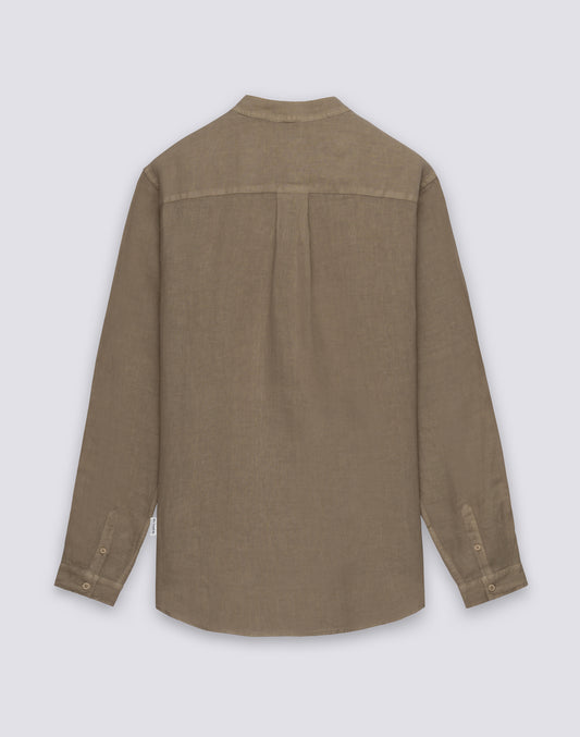 GARMENT DYED LINEN SHIRT WITH MANDARIN COLLAR