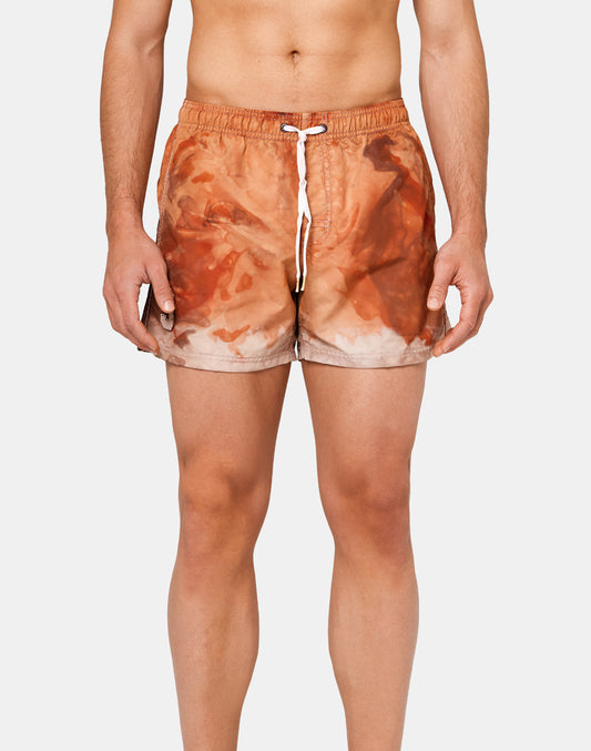 SHORT SWIM SHORTS WITH AN ELASTICATED WAISTBAND AND PATCH