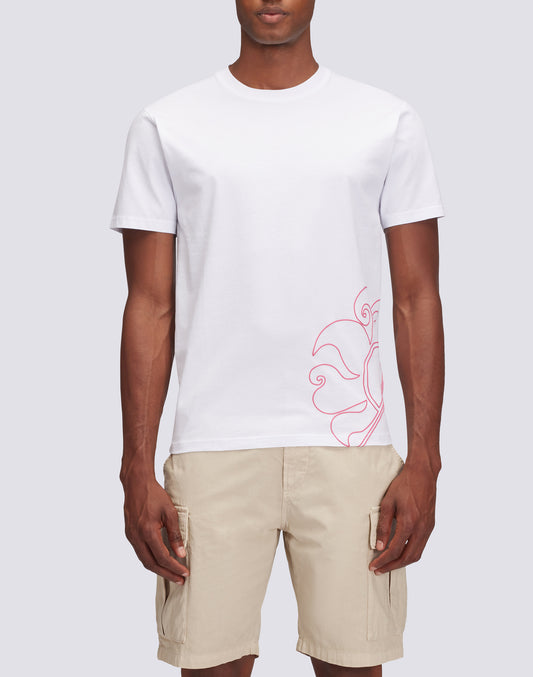 CAMISETA CAPSULE MICROSTAMPA PALMA Y LETRA BORDADA