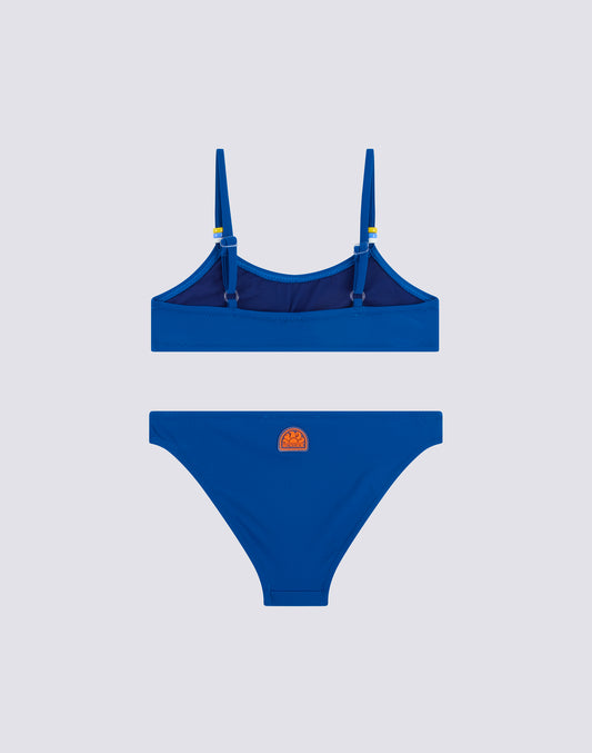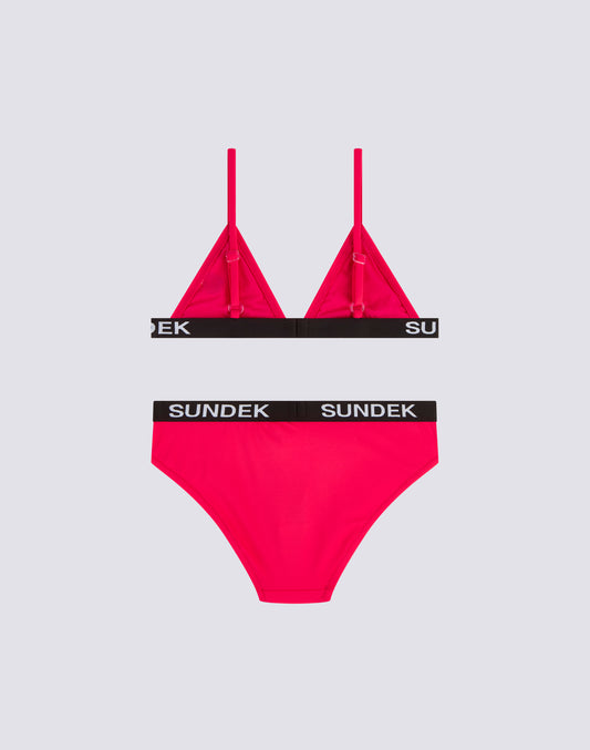BIKINI DE NIÑA CON TOP TRIANGULAR Y BAÑADOR FIJO CON ELÁSTICO LOGO