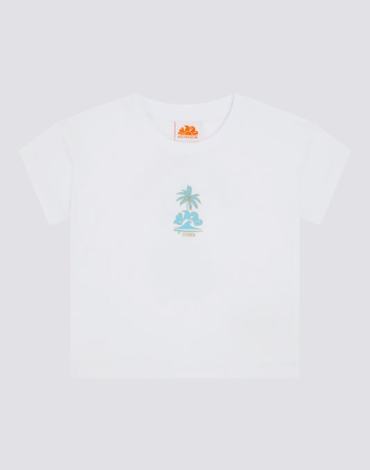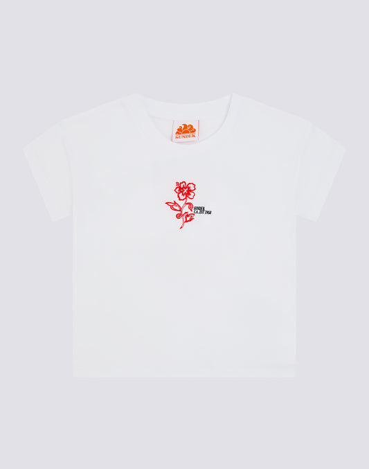 CAMISETA CONFORT PARA NIÑA CON ESTAMPADO MAXI HIBISCUS PARADISE EN LA ESPALDA
