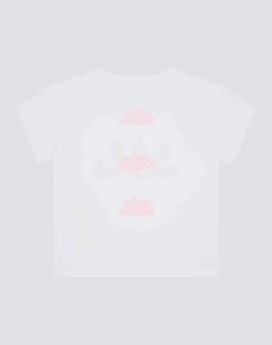 CAMISETA CONFORMA PARA NIÑA CON ESTAMPADO MULTILOGO EN LA ESPALDA