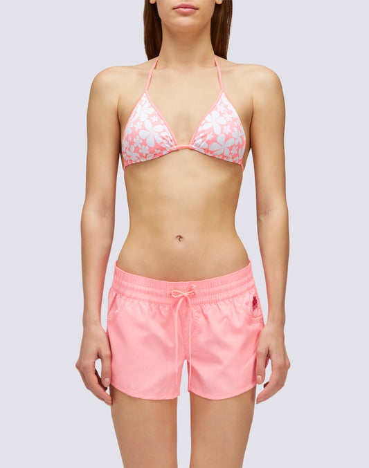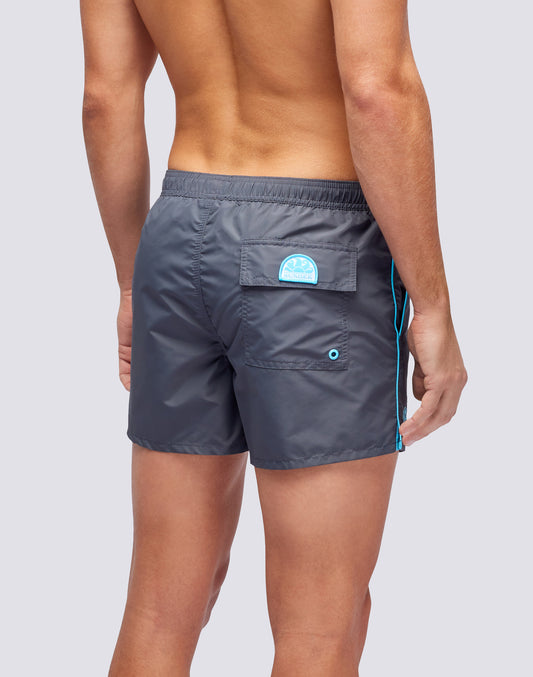 ICÓNICO BAÑADOR CORTO DE TAFETÁN CON CINTURA ELÁSTICA Y RIBETES EN CONTRASTE