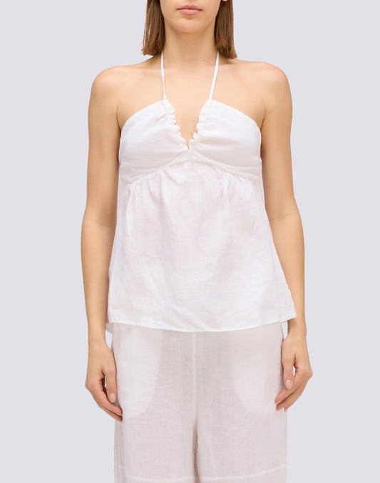 TOP DE LINO TEÑIDO EN PIE SIN MANGAS