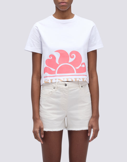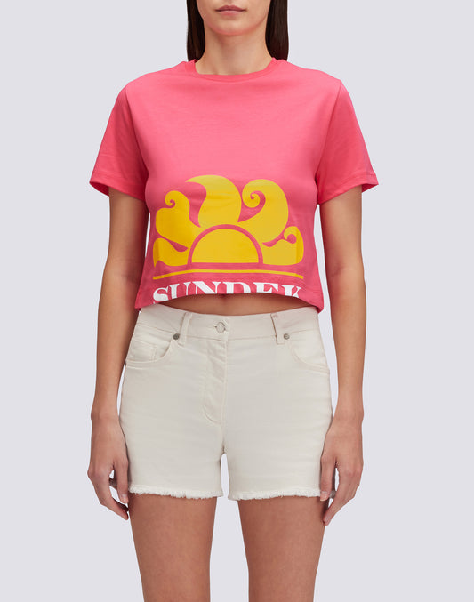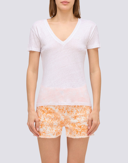 CAMISETA DE MEDIA MANGA DE LINO CON ESTAMPAJE FLEUR DE JOIE