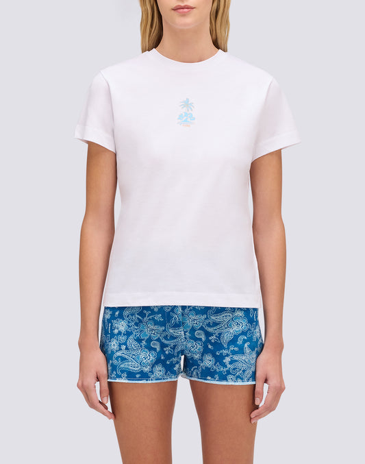 CAMISETA DE MUJER CON IBISCO BORDADO Y ESTAMPADO