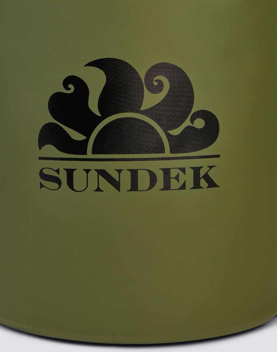 Mochila técnica resistente al agua de 20 litros con logotipo Sundek en la parte delantera, tirantes ajustables y mosquetón. Ideal para excursiones o viajes cortos.