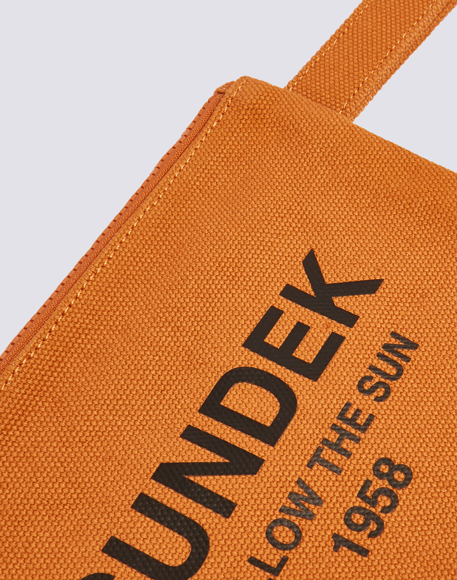 Logotipo y eslogan de Sundek impresos en contraste en la parte delantera