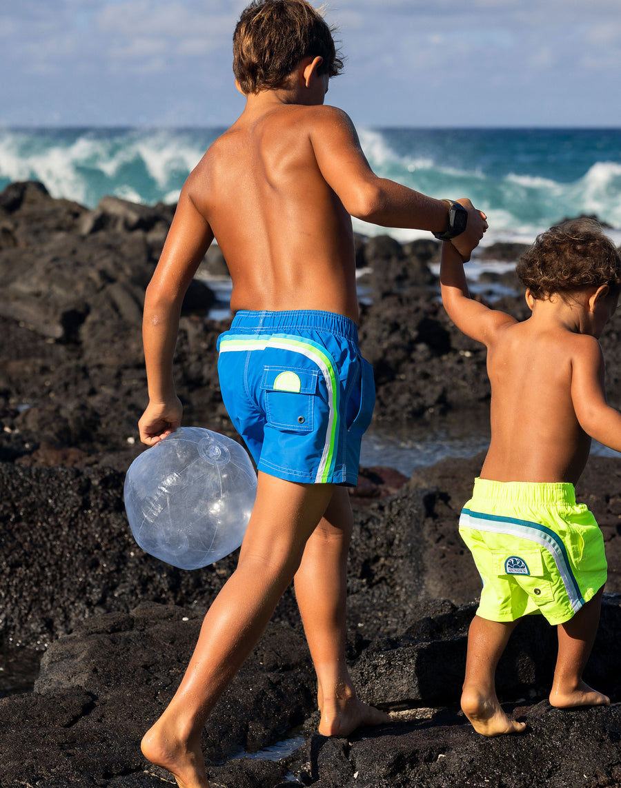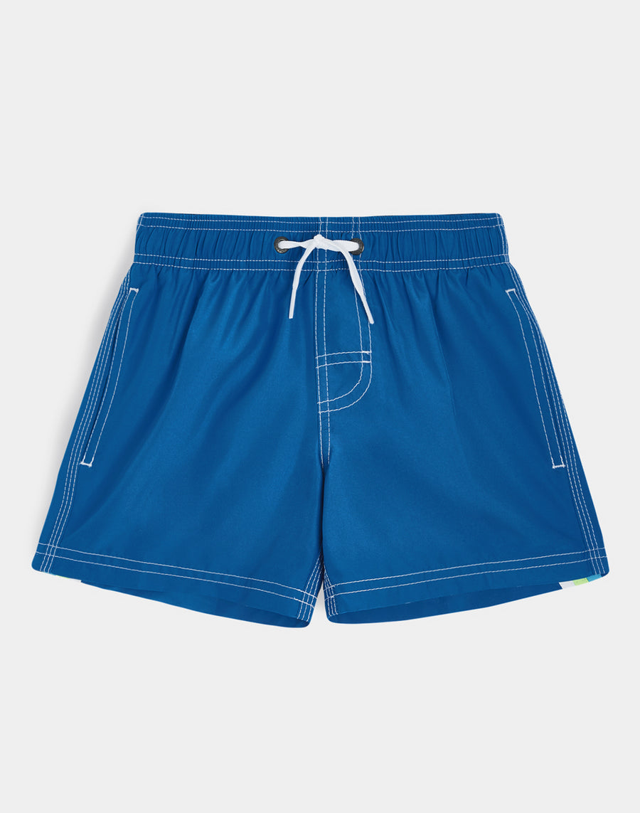 Color intenso y tejido ultracómodo y de secado rápido para este short de playa para niño. Un modelo que acompañará a tu hijo en sus múltiples actividades en vacaciones, perfecto para moverse y jugar libremente.