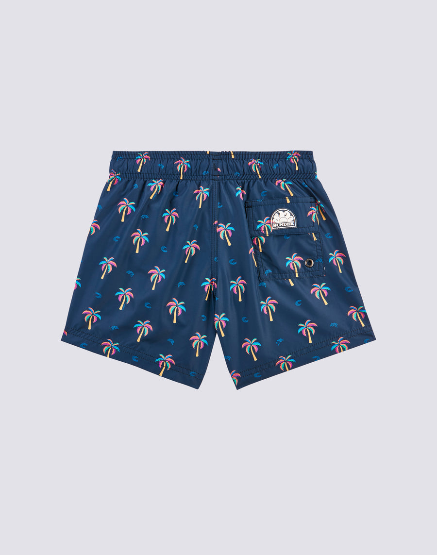 TRAJE DE BAÑO CORTO CON CINTURA ELÁSTICA EN POLIÉSTER LIGERO CON ESTAMPADO DE MINI PALMERAS