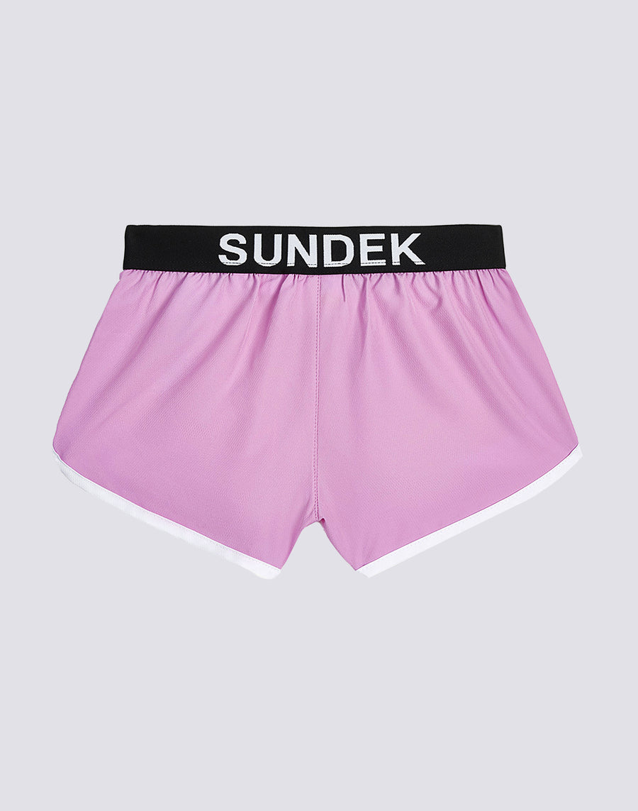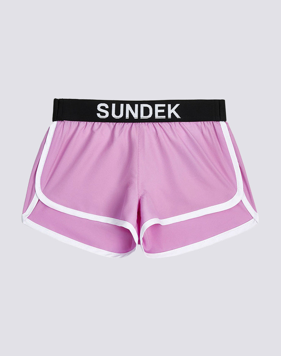 Unos shorts ligeros con logotipo Sundek, perfectos para llevar sobre el bañador. Fáciles de poner, con un tejido ligero y cómodo, acompañarán a tu hija de la playa a los juegos de verano.
