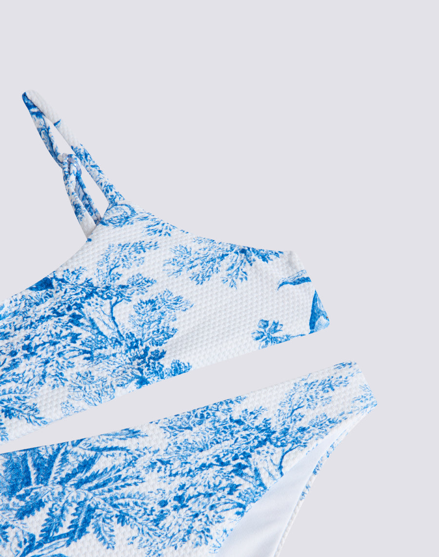BIKINI CON TOP BANDEAU Y BRAGUITA FIJA TOILE DE JOUY
