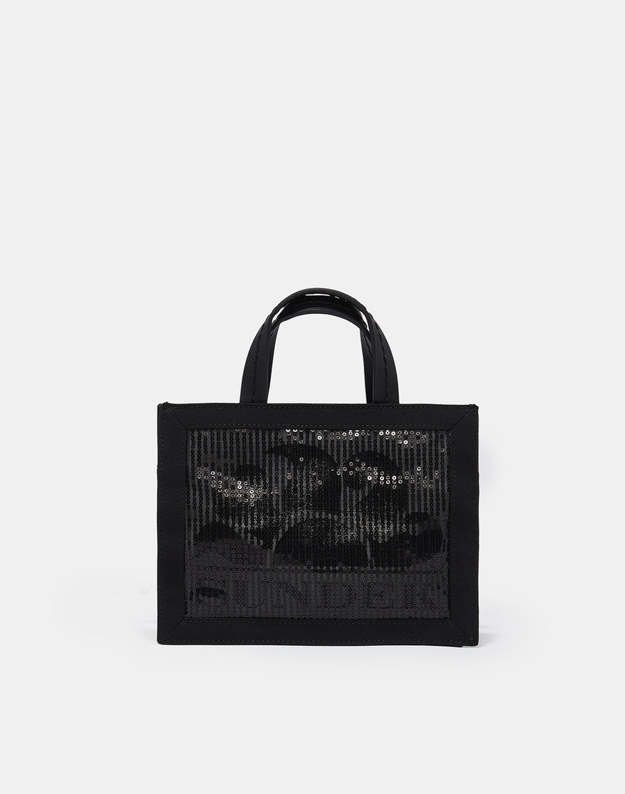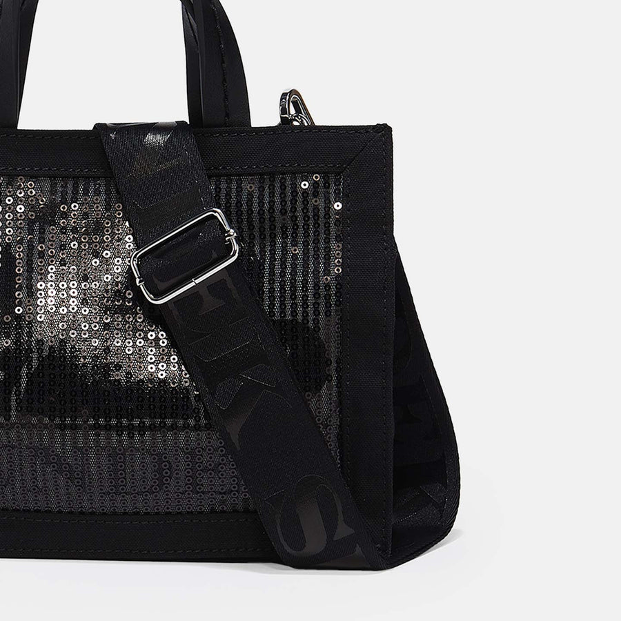 Bolso pequeño de malla con detalles de lentejuelas con logotipo Sundek estampado. Esta bolsa es perfecta para la playa gracias a su malla de tejido fino que evita el paso de la arena.