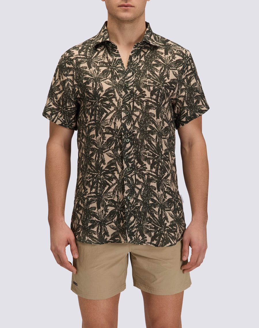 CAMISA DE HOMBRE DE LINO DE MEDIA MANGA ESTAMPADA