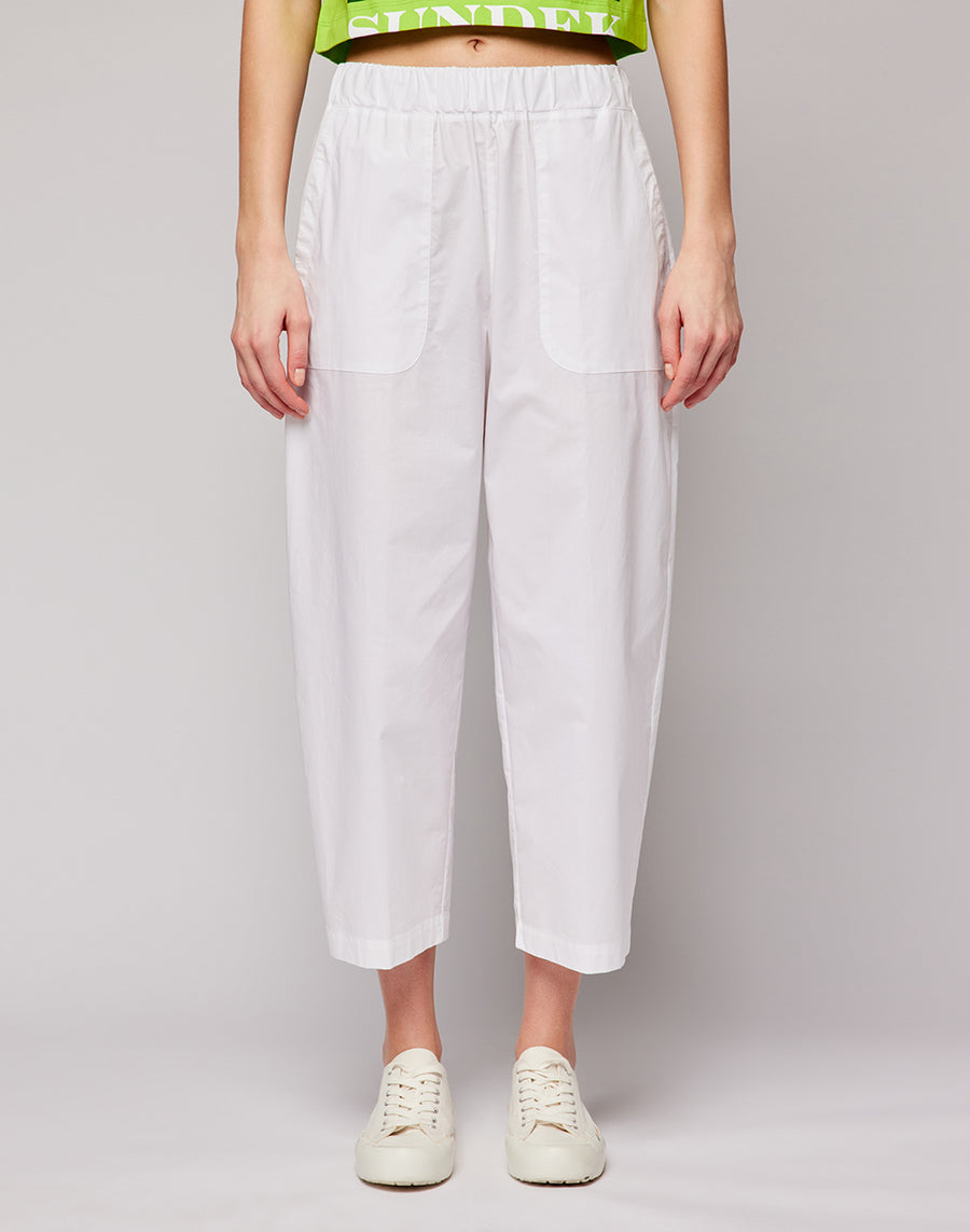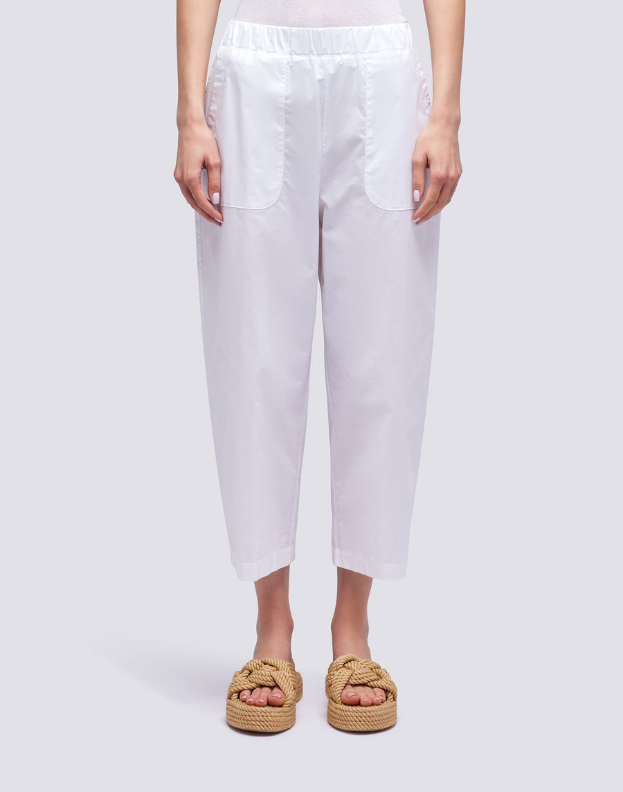 Pantalón multiusos de popelina de algodón, elegante y fresco. Cintura elástica alta y cordón interior ajustable para un máximo confort.