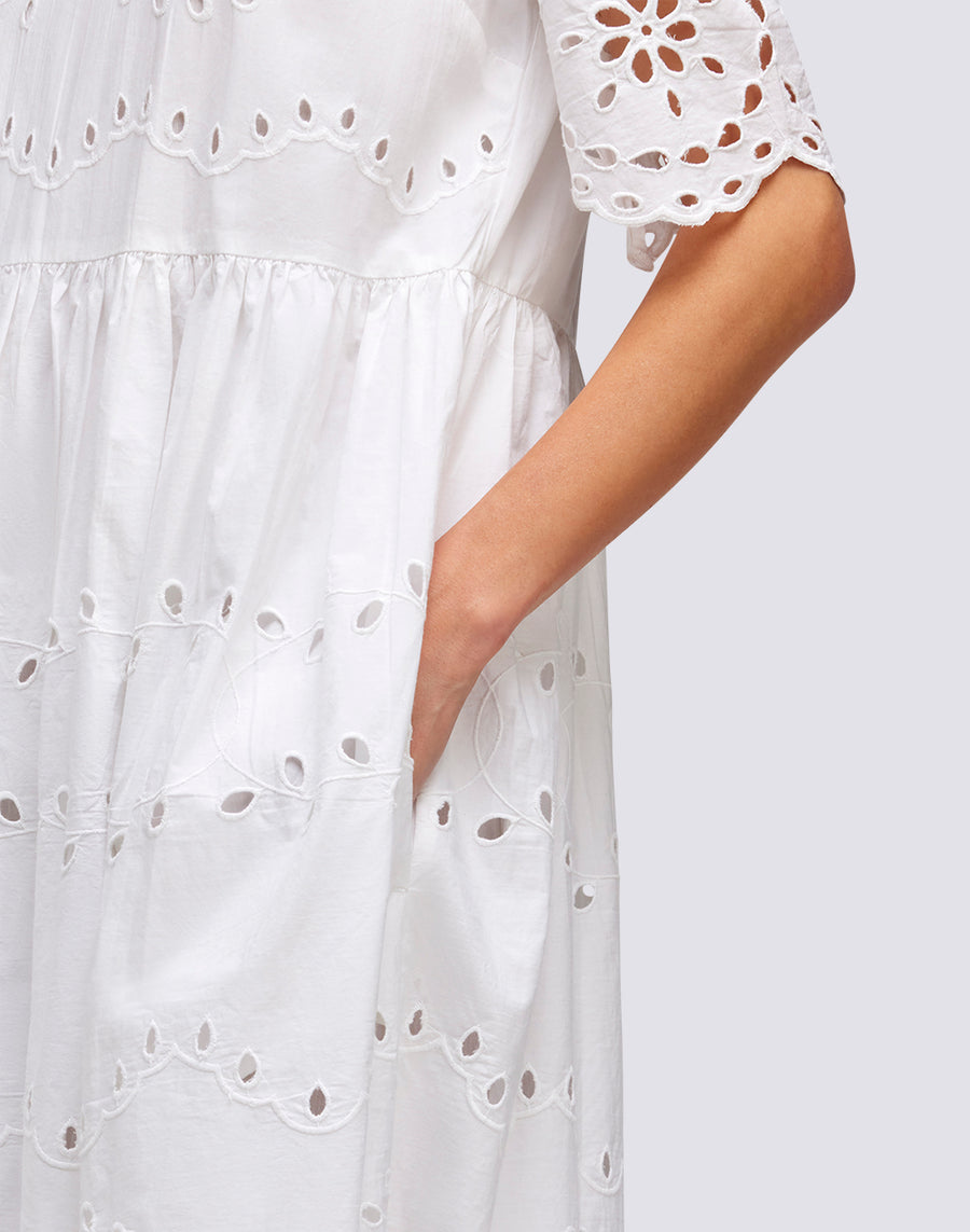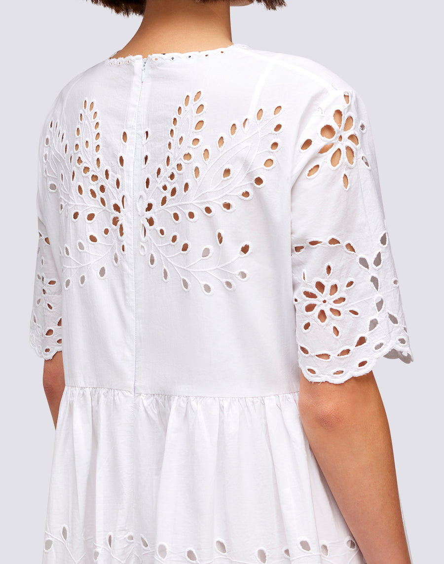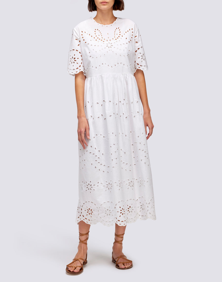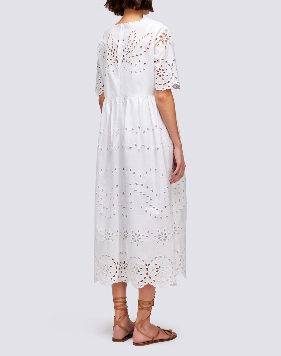 Vestido de mujer en algodón sangallo, elegante e ideal para ocasiones especiales.