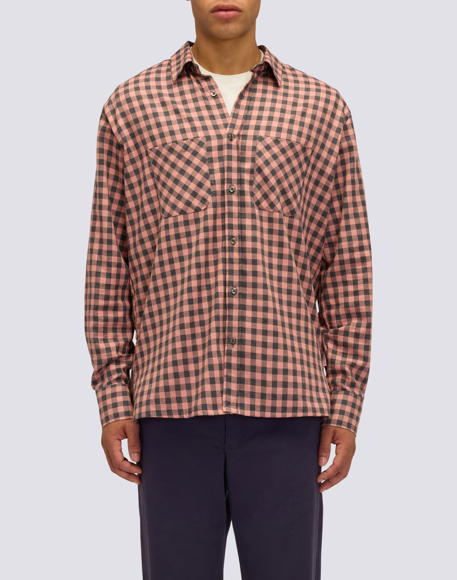 CAMISA DE HOMBRE A CUADROS DE ALGODÓN GABARDINA TEÑIDA A MANO