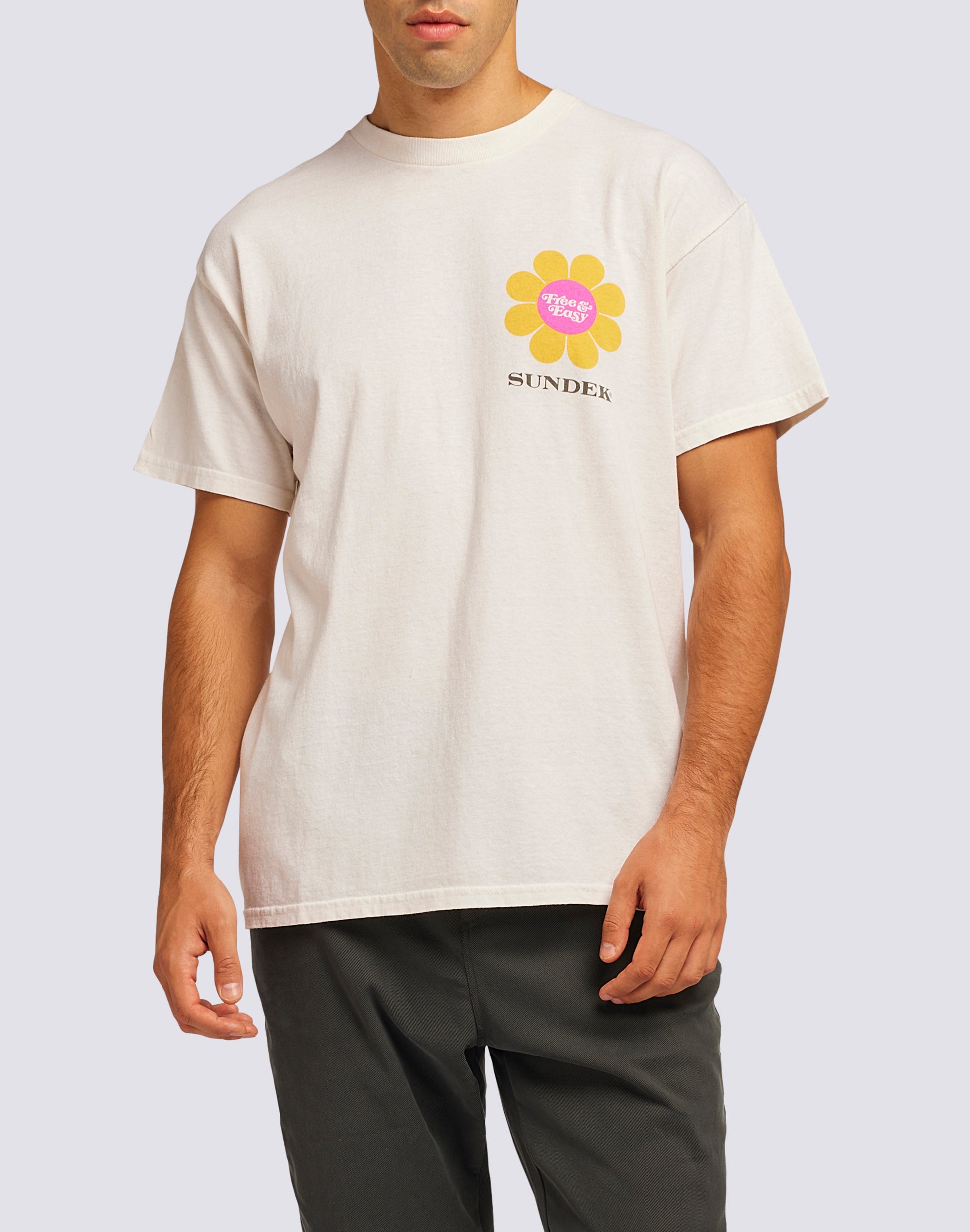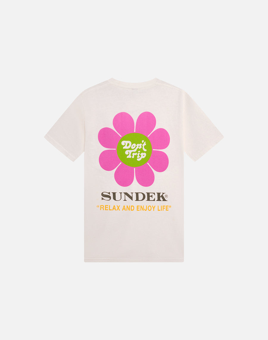 Descubre la colaboración entre Free&Easy y Sundek con esta cómoda camiseta de algodón con un estampado vibrante y colorido. Ponte esta prenda y ¡siéntete como si estuvieras de vacaciones!