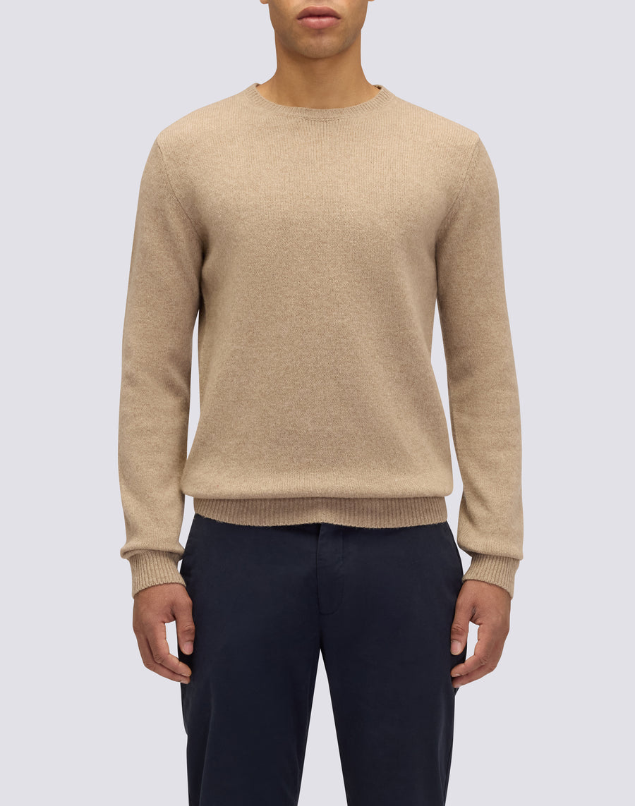 Jersey de cuello redondo para hombre en mezcla de lana, ideal para crear tanto outfits informales como más elaborados.