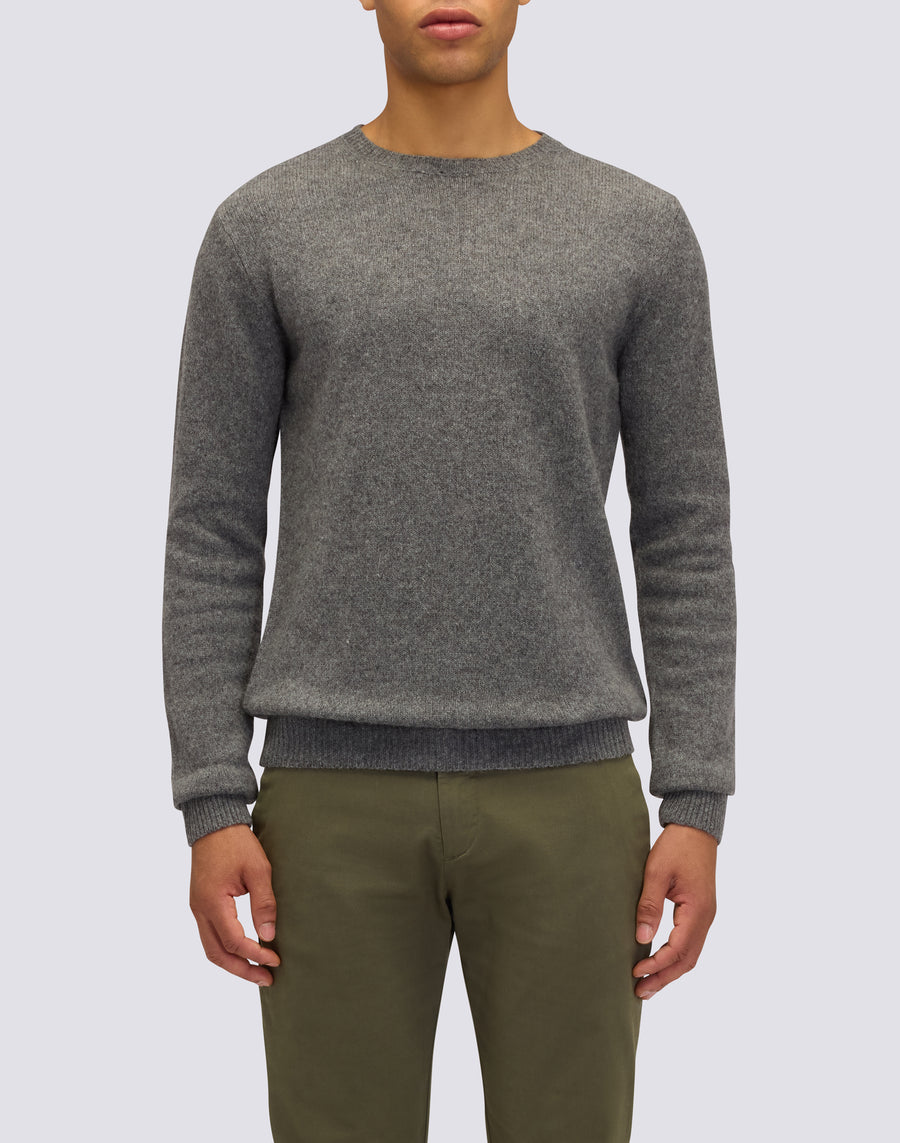 Jersey de cuello redondo para hombre en mezcla de lana, ideal para crear tanto outfits informales como más elaborados.