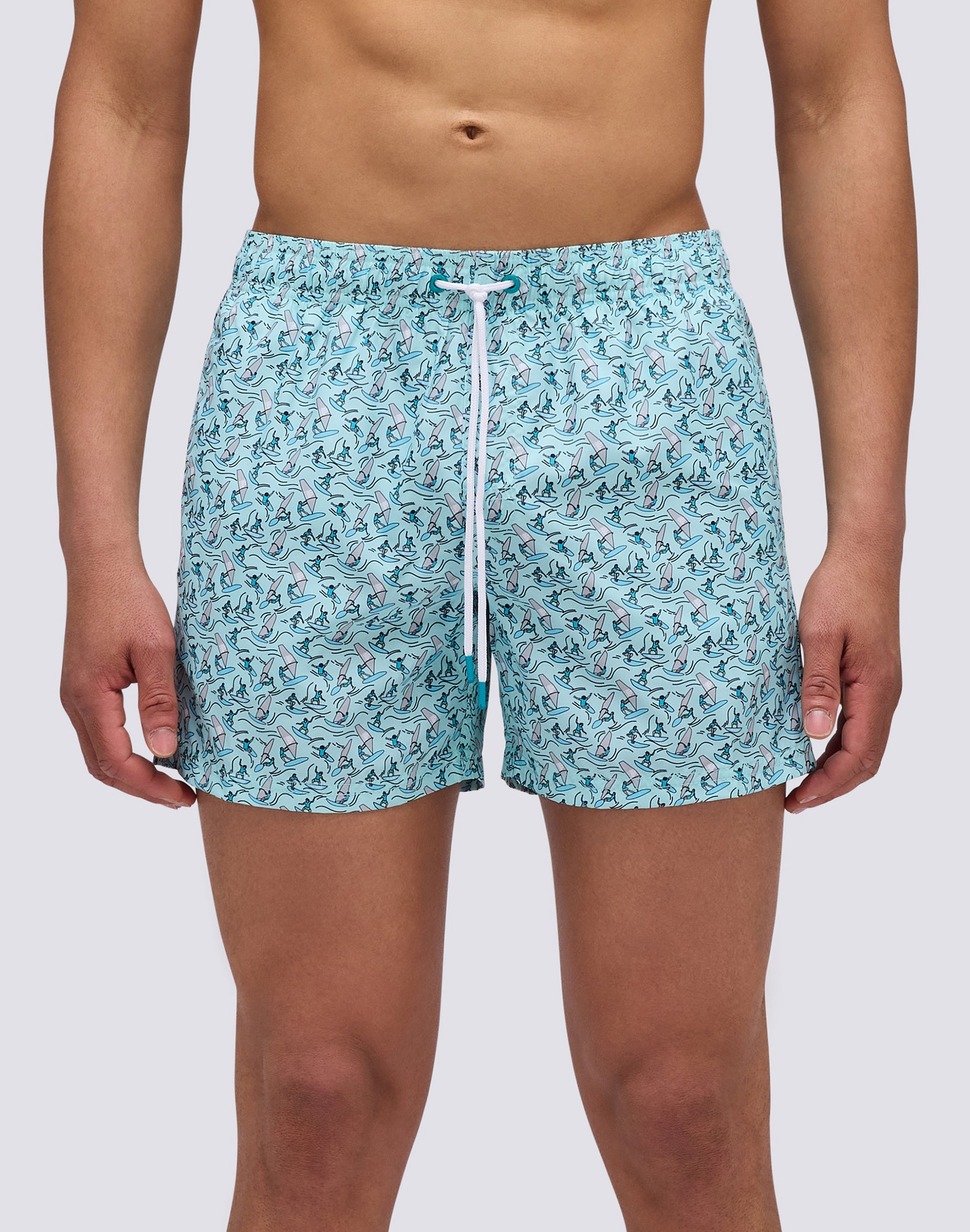 Bañador con cordón elástico en la cintura, confeccionado en tejido ligero Repreve® reciclado a partir de botellas de plástico. Estampado mini surf y el tradicional arcoíris Sundek en tono sobre tono en la parte trasera. Ancho exterior del muslo: 35 cm (talla M).