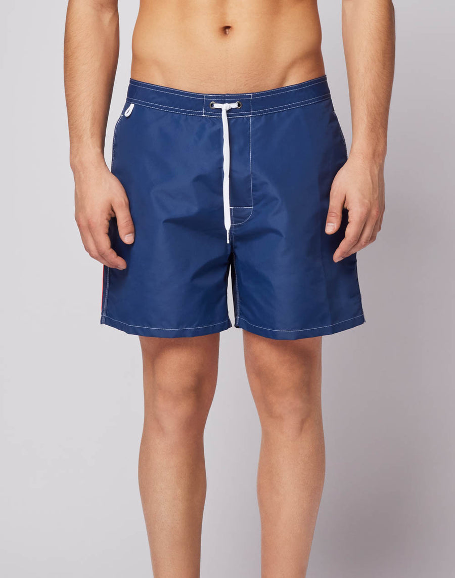 Icónicos y atemporales: estos son unos boardshorts de largo medio con tira fija en la cintura y cierre de cordones, confeccionados en el histórico tejido de tafetán de nailon que los hace muy ligeros, de secado rápido y tan resistentes que los volverás a poner en tu maleta año tras año para regalarte nuevas temporadas de mar y deporte. El clásico pespunte a tres agujas aumenta aún más la resistencia del bañador y en la espalda lleva el clásico arcoíris Sundek tricolor.