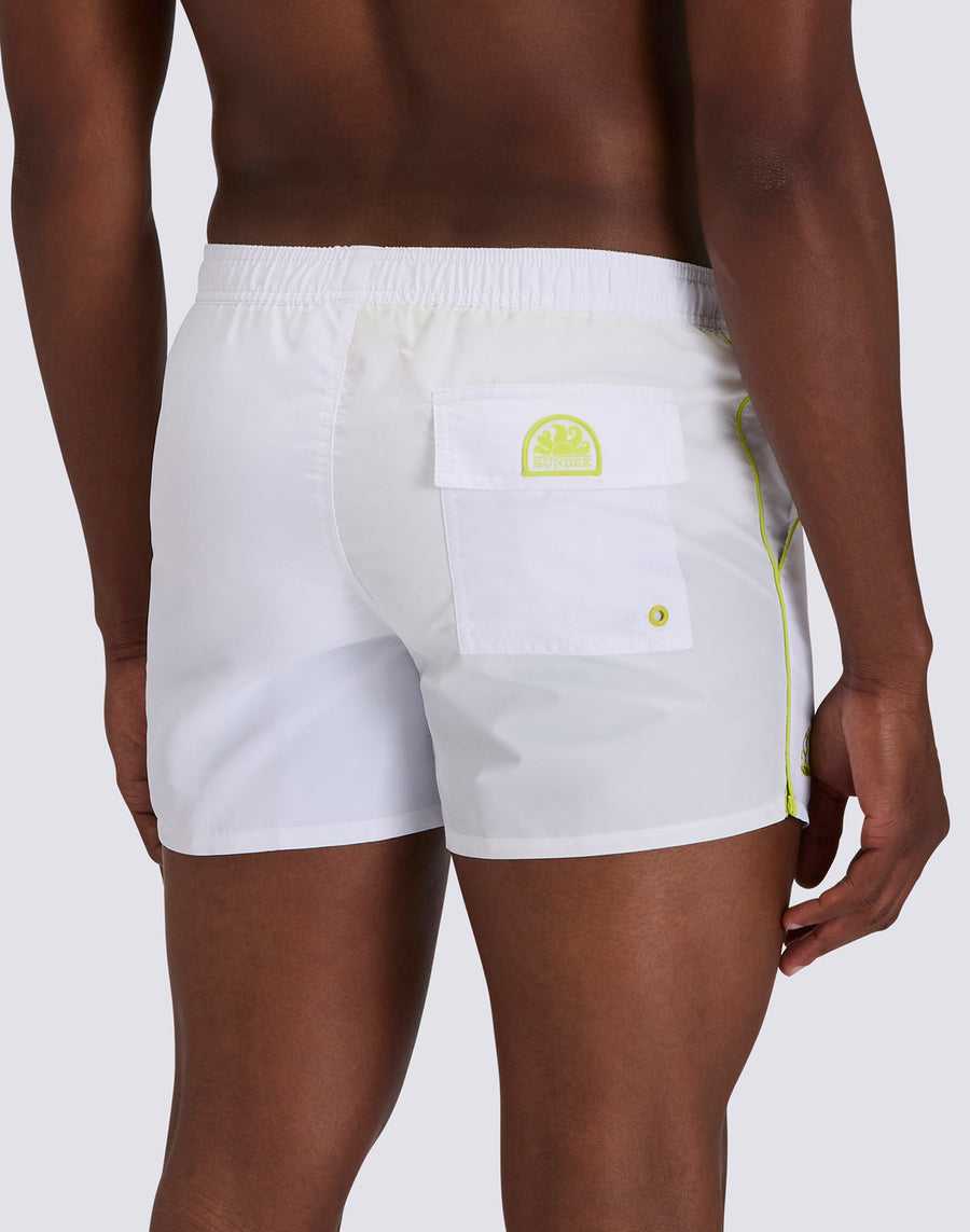 Il costume da bagno corto modello Coltrane rappresenta l'evoluzione dello stile Sundek: design sportivo-contemporaneo, dettagli funzionali e qualità. Questo boardshort corto da uomo con vita elasticata e piping frontale a contrasto unisce estetica distintiva e performance tecniche, perfetto per chi cerca uno stile dinamico e praticità assoluta.
