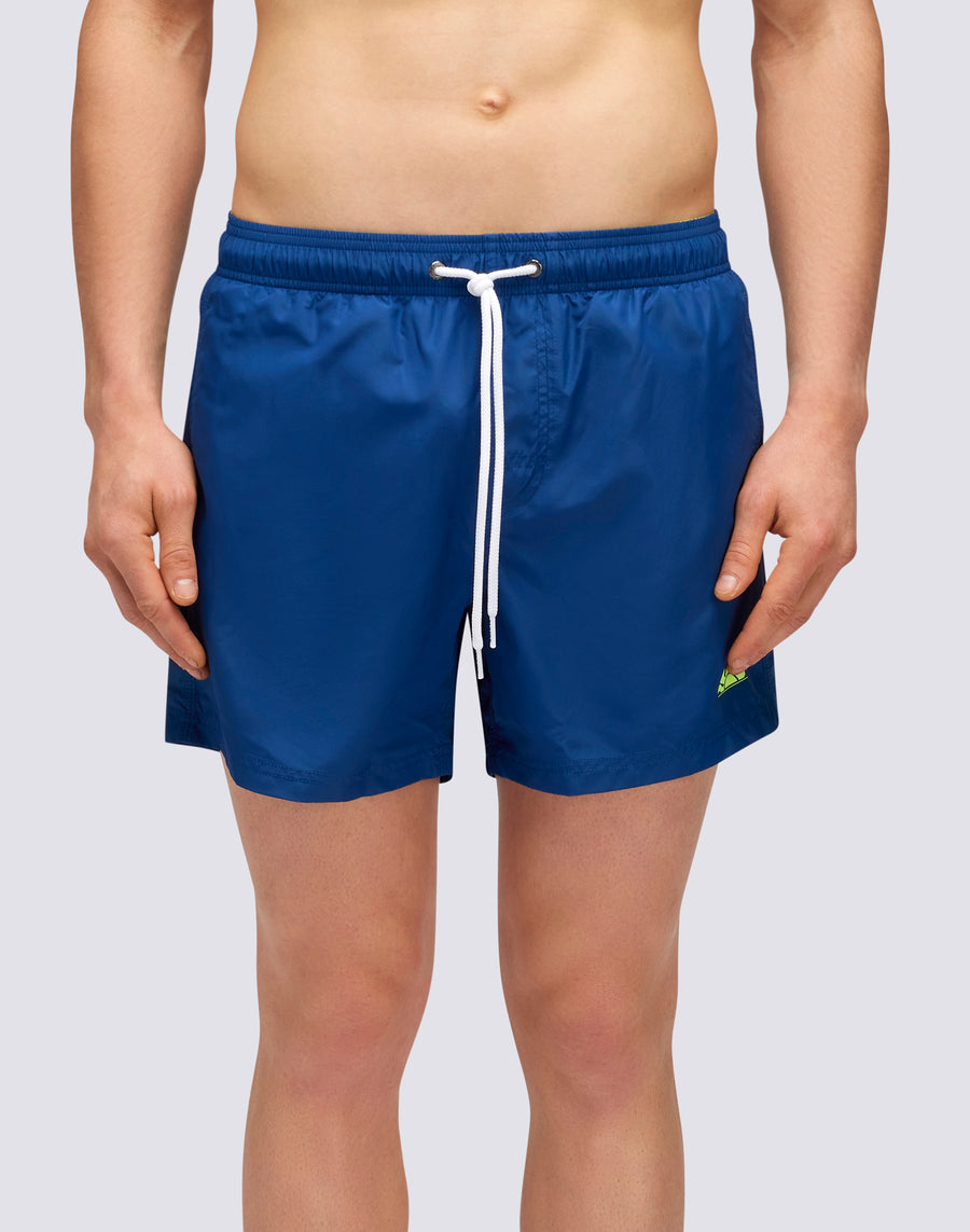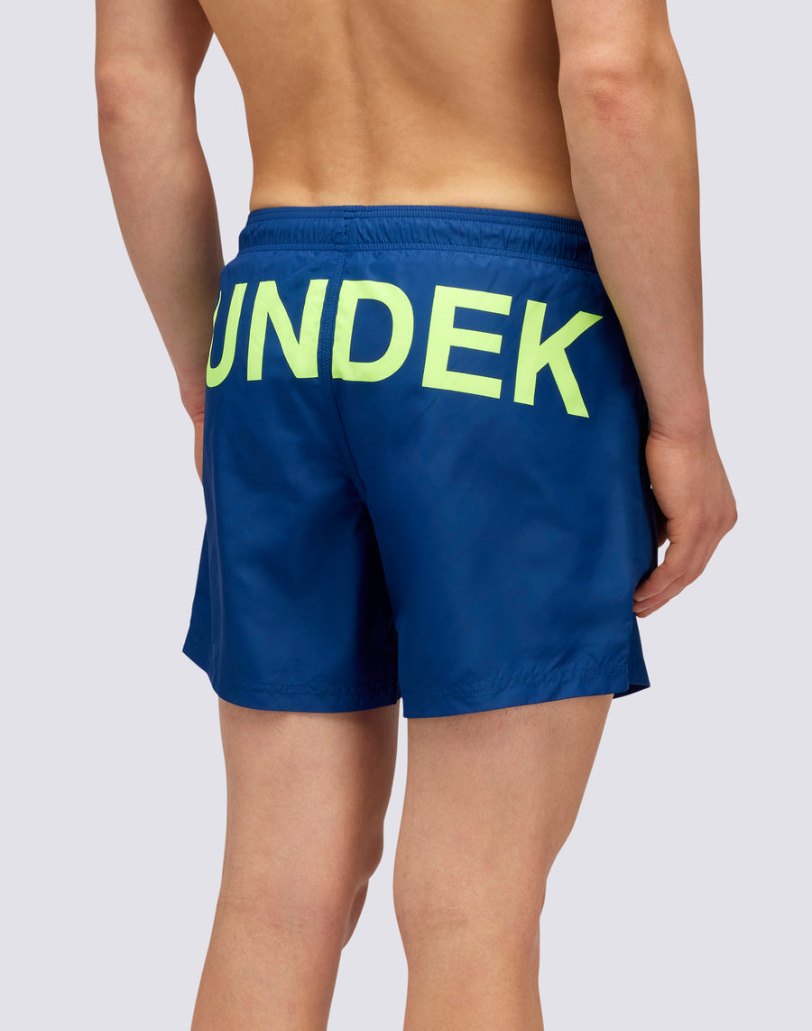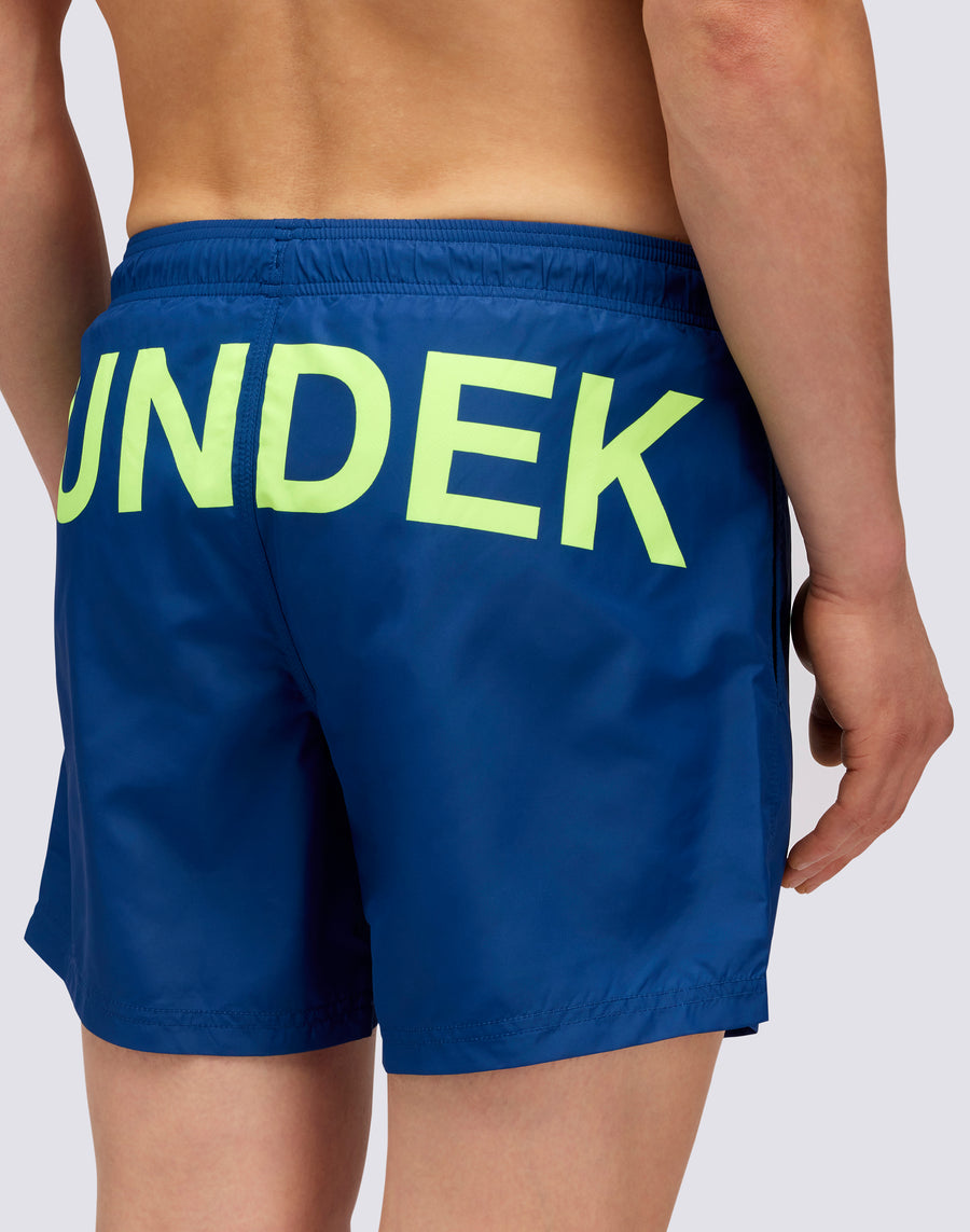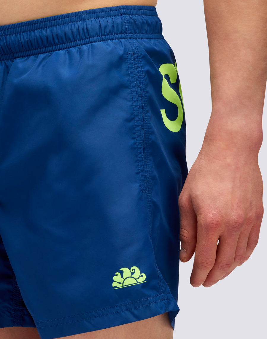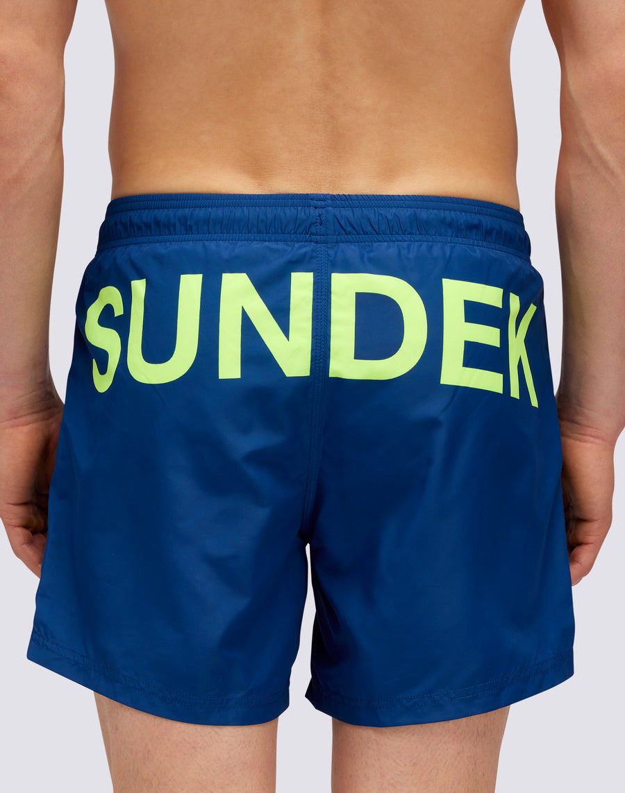 Expresar ADN Sundek. Bañador corto de color liso con cintura elástica y estampado SUNDEK en la espalda. El cosido a 3 agujas ofrece una alta resistencia en el tiempo. Tejido de poliéster reciclado.