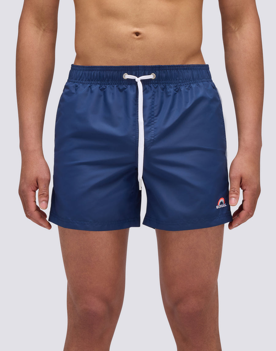 ICÓNICO BAÑADOR CORTO DE TAFETÁN CON CINTURA ELÁSTICA Y BORDADO ARCO IRIS