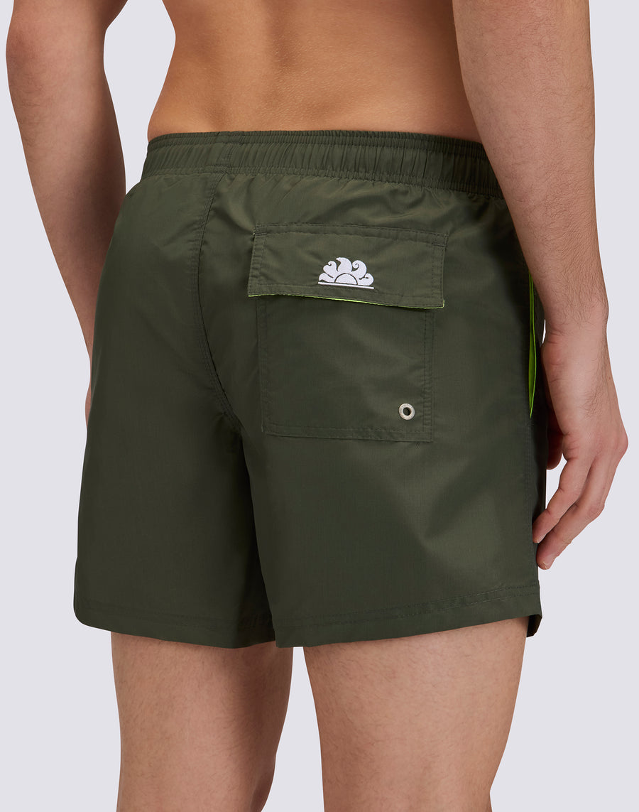 ICÓNICO BAÑADOR CORTO DE TAFETÁN CON CINTURA ELÁSTICA Y BORDADO ARCO IRIS