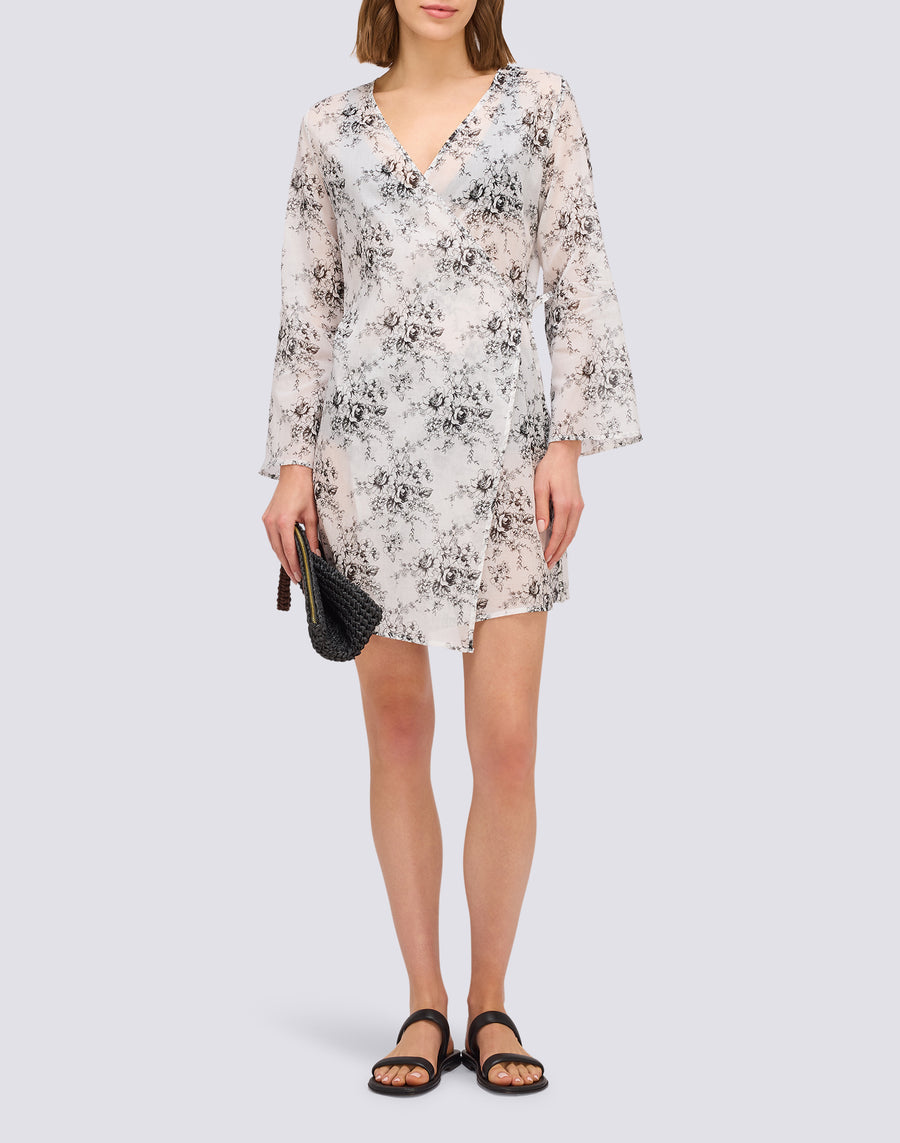 VESTIDO DE MUJER WRAPOVER CON ESTAMPADO ROSE DE JOIE