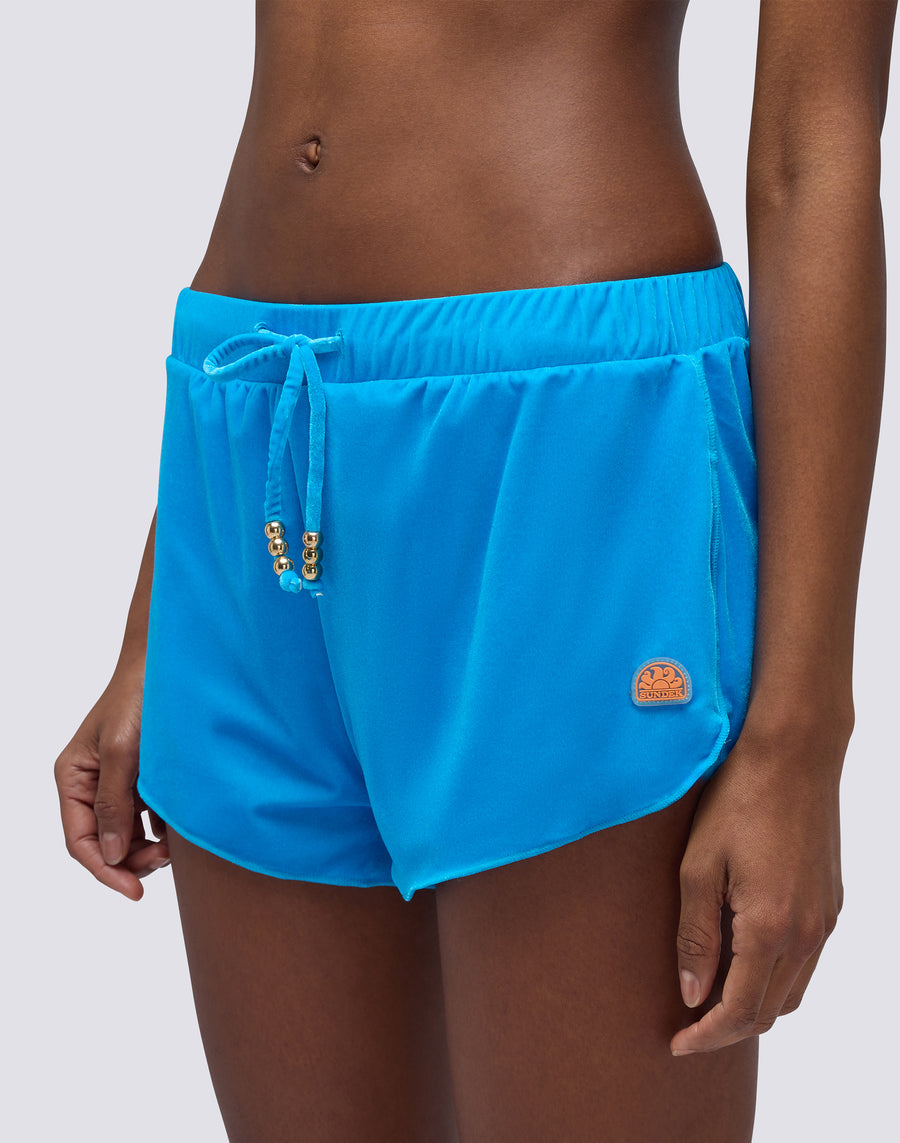 Pantalones cortos de playa de terciopelo para mujer, fáciles de combinar con el bañador a juego para que cada día de playa sea perfecto.