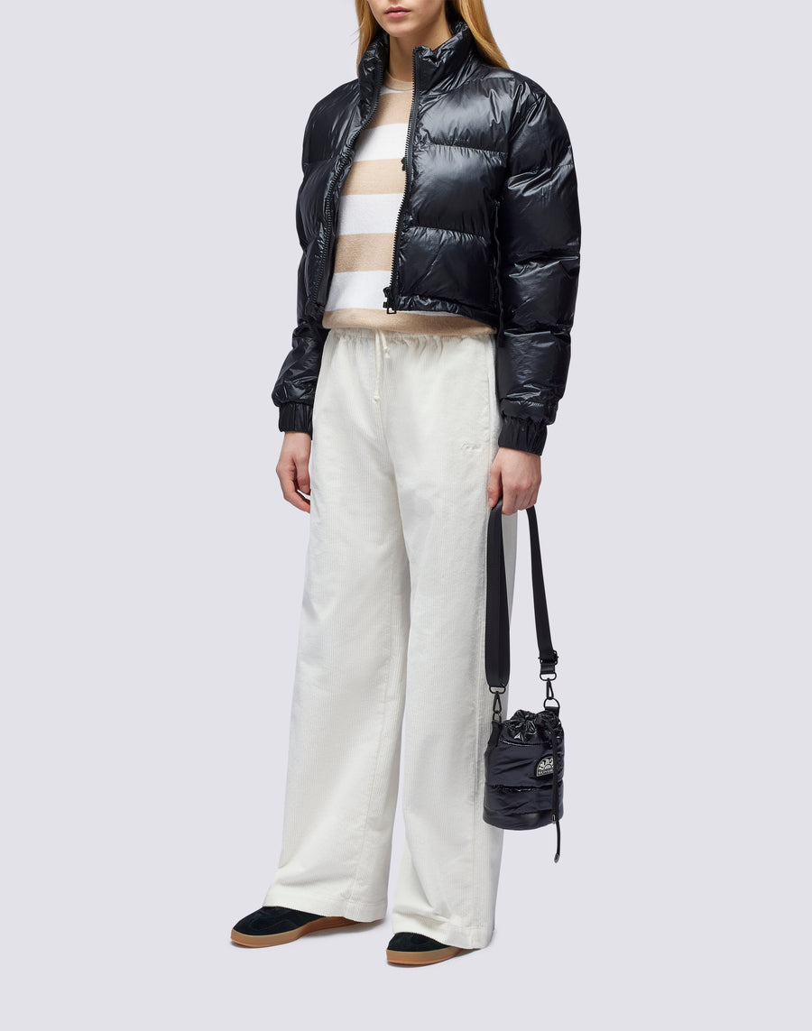 Haciendo un guiño a las últimas tendencias, esta chaqueta corta de plumón para mujer tiene una cremallera central completa y bolsillos laterales. Confeccionada en nailon arrugado, es perfecta para quienes buscan una chaqueta original para el día a día.