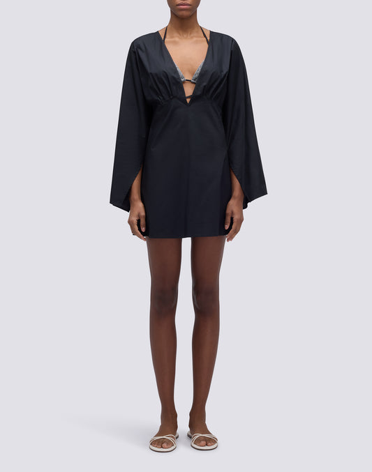 ROBE COURTE AVEC ÉPAULES DÉCOUVERTES EN VOILE DE COTON