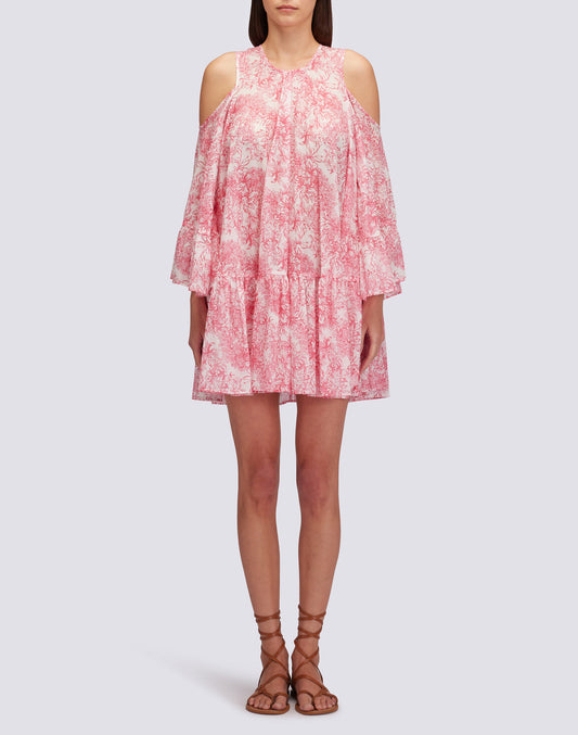 ROBE COURTE EN VOILE DE COTON IMPRIMÉ FLEUR DE JOIE