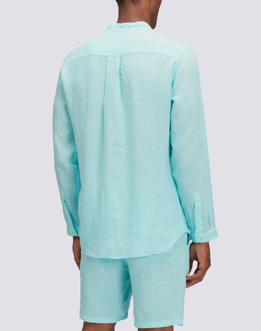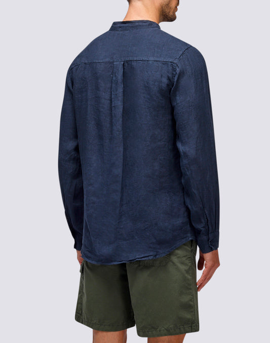 CHEMISE EN LIN TEINT EN PIÈCE AVEC COL MAO