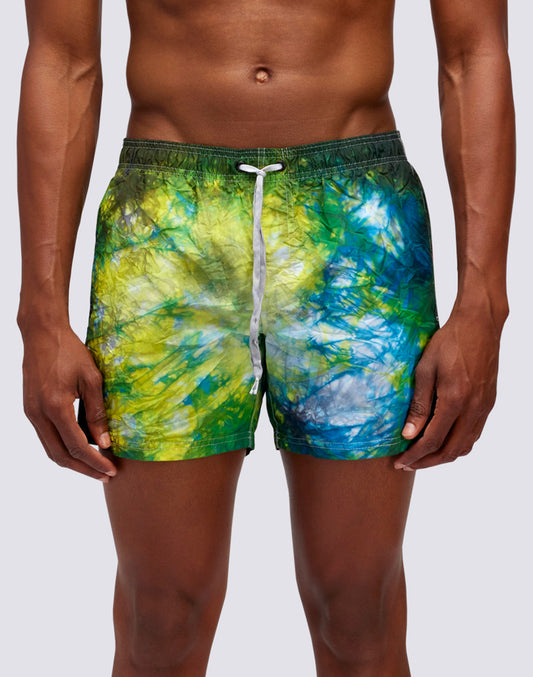 SHORT DE BAIN COURT À TAILLE ÉLASTIQUE ET FENTES RONDES SUR LES CÔTÉS