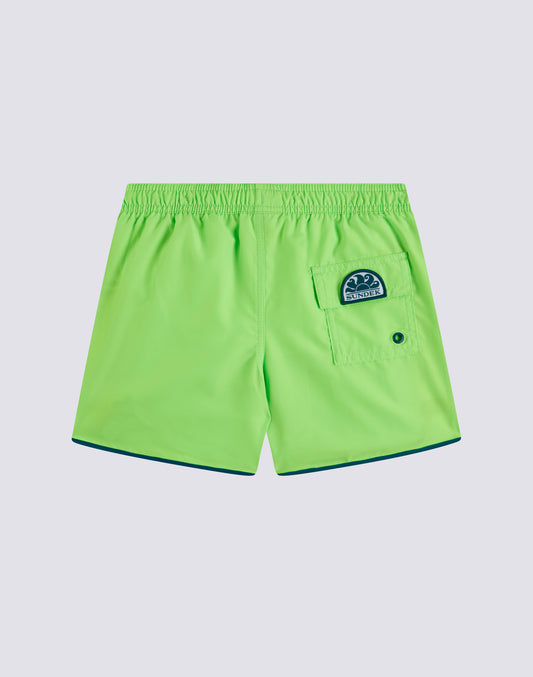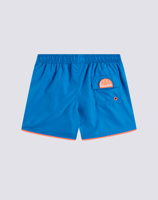 MAILLOT DE BAIN COURT EN TAFFETAS EMBLÉMATIQUE À TAILLE ÉLASTIQUE AVEC PASSEPOIL