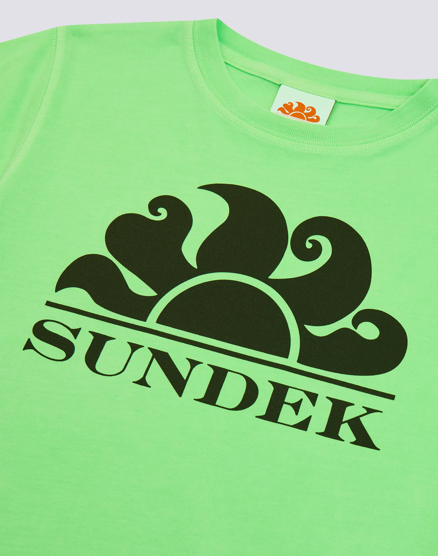 Questa t-shirt manica corta in morbido cotone sovratinto è perfetta per il tuo bambino. Realizzata con materiali di alta qualità, garantisce il massimo comfort per un look casual e moderno. Aggiungi un tocco di stile al guardaroba del tuo bambino con questa versatile t-shirt con logo Sundek.