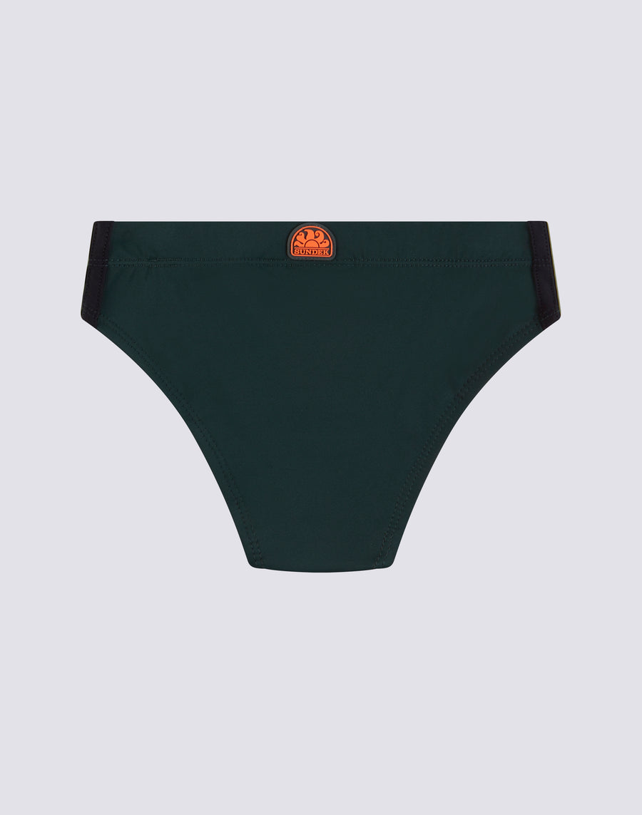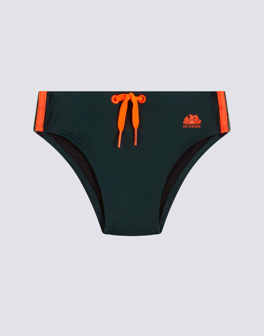 Plongez-vous dans les couleurs de l'arc-en-ciel. Slip de maillot de bain enfant en nylon Econyl régénéré.