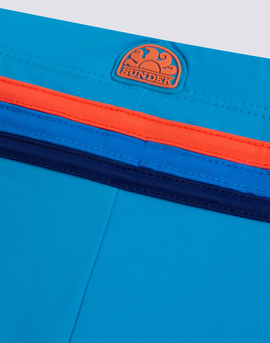Le boxer de plage pour enfants est tout en couleurs, sans oublier l'environnement, car il est fabriqué en nylon régénéré ECONYL®. Confortable grâce à la ceinture élastique et au cordon de serrage réglable, c'est le maillot de bain que votre enfant peut facilement porter pour jouer et nager.
