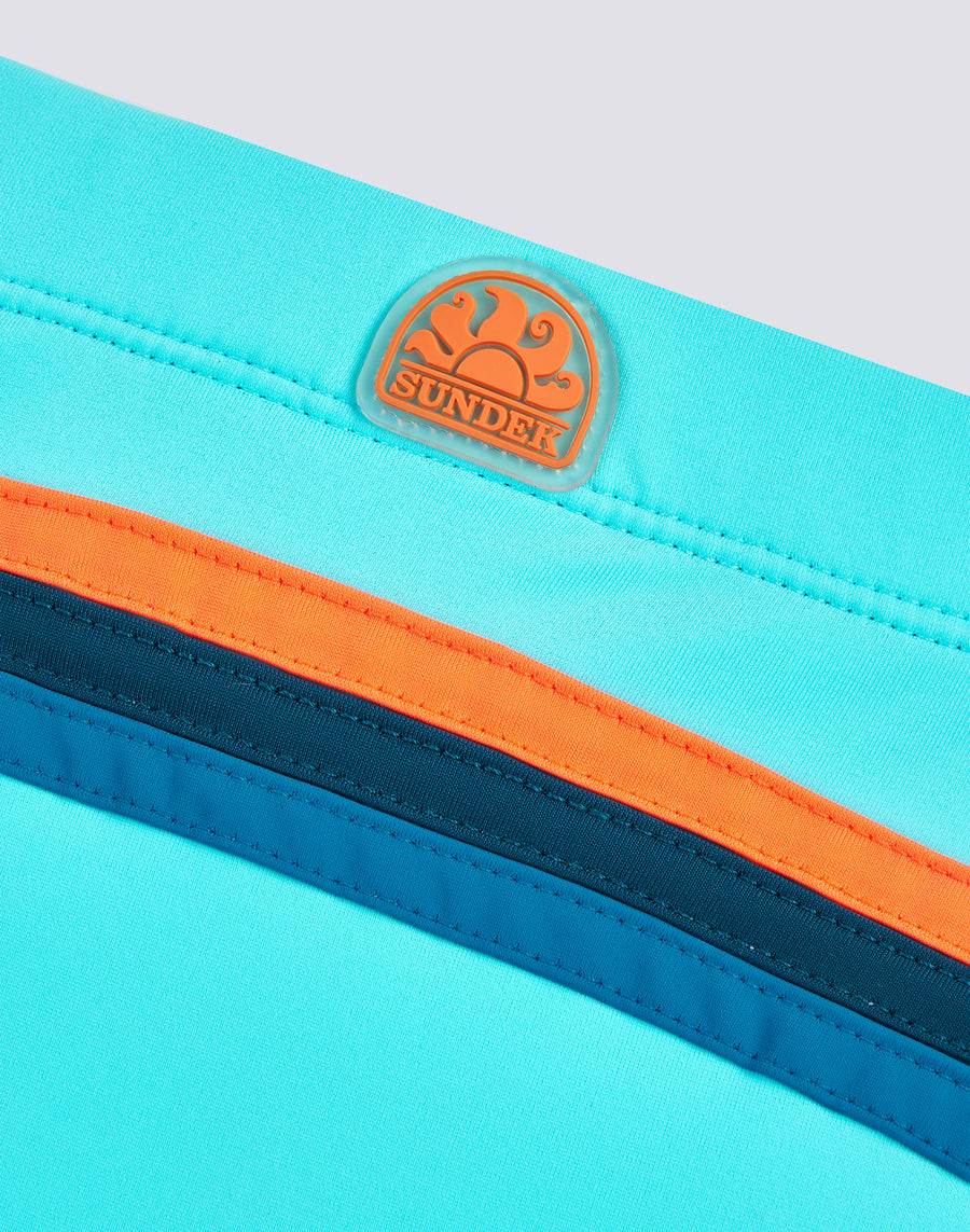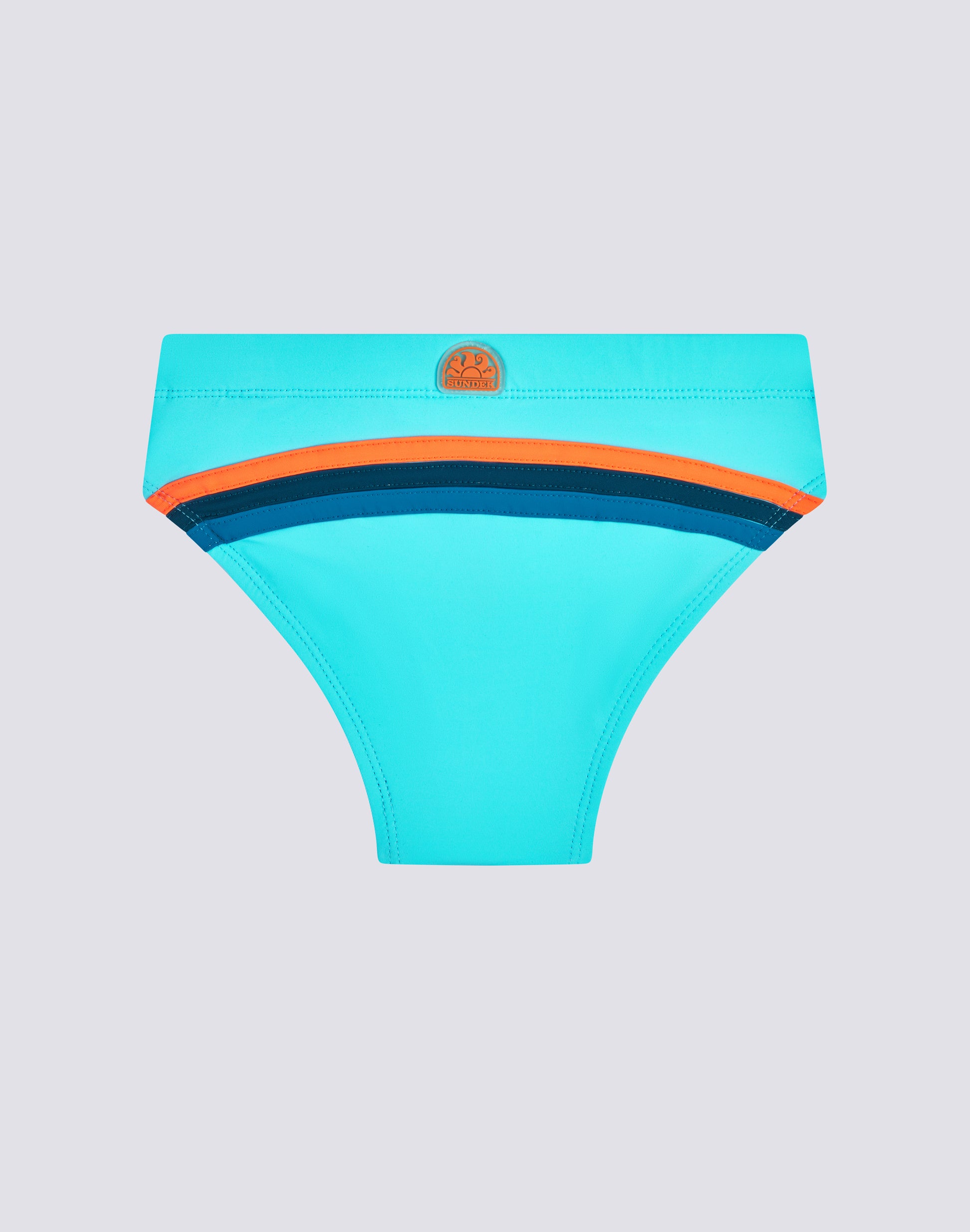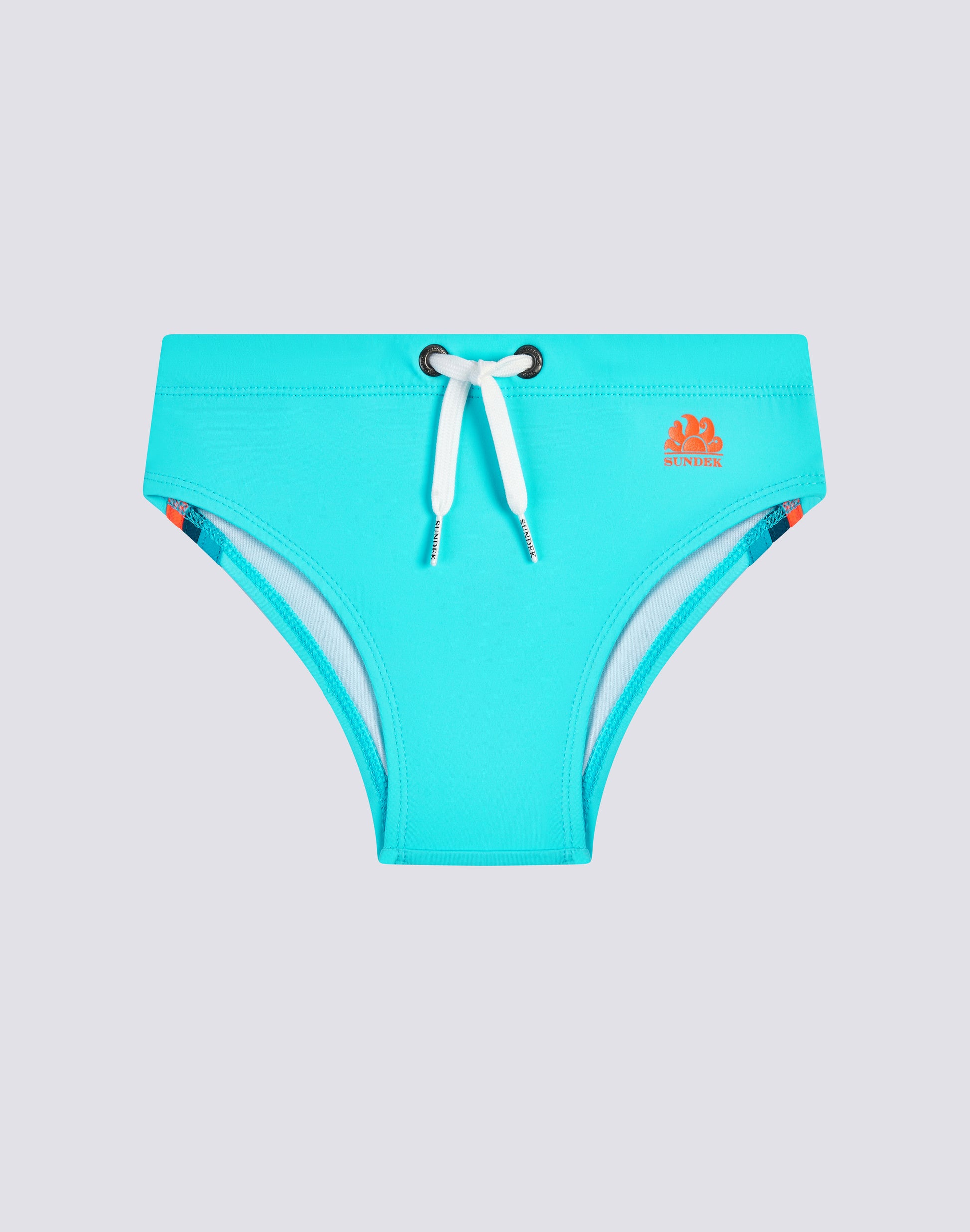 Slip de bain pour enfants avec détails arc-en-ciel au dos, cordon de serrage et taille élastiquée.