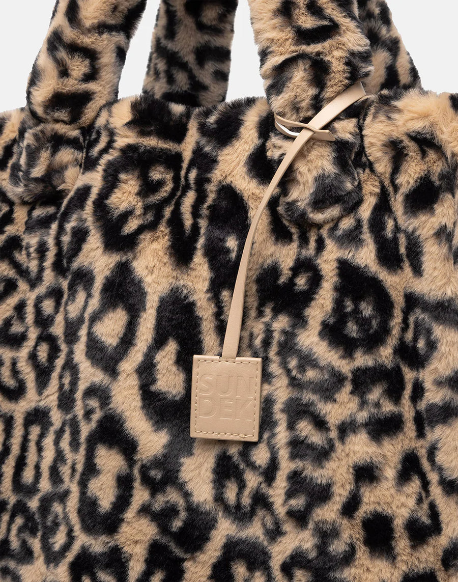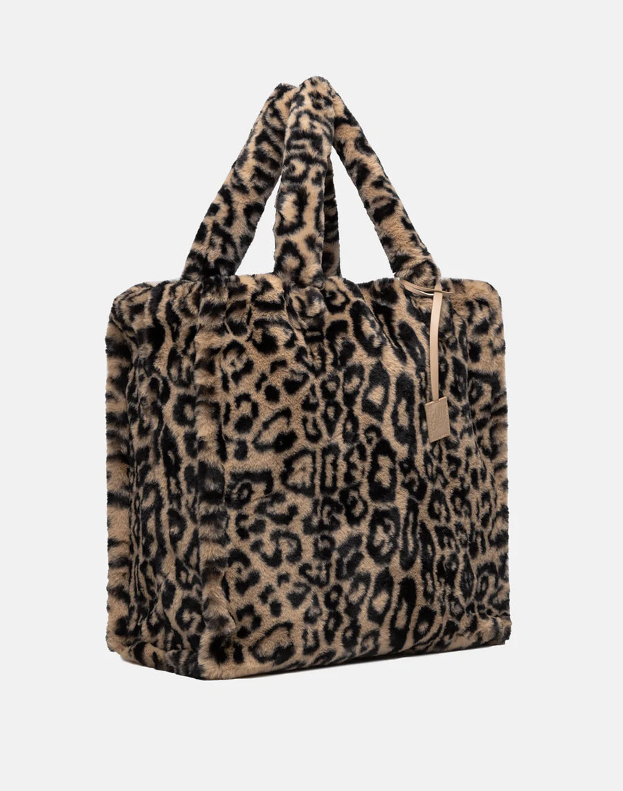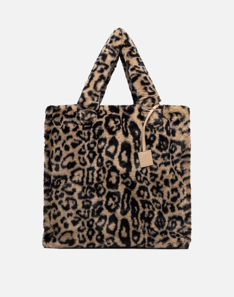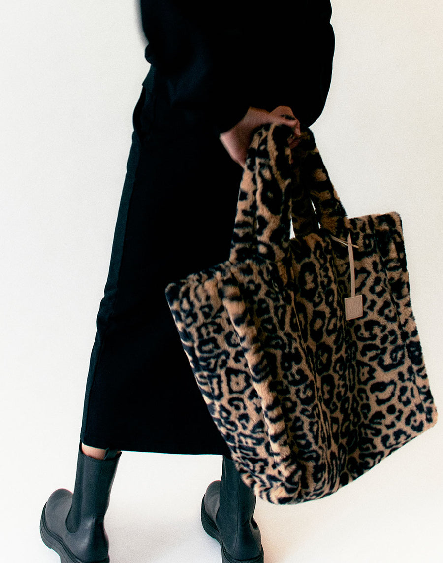 Grand et spacieux, ce tote bag en fourrure écologique avec imprimé léopard est sur le point de devenir l'indispensable de la saison.
