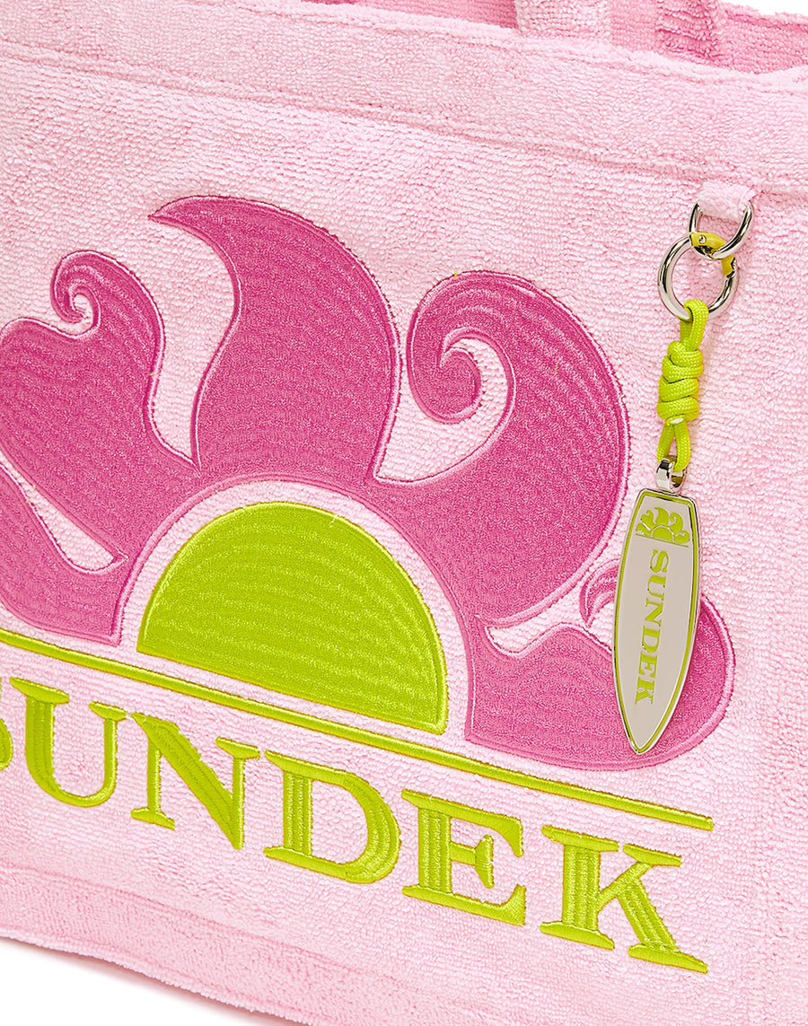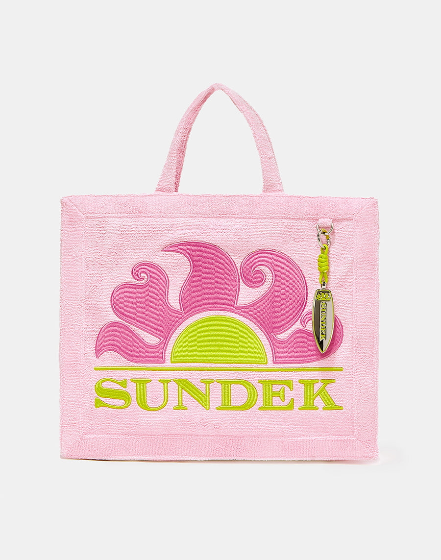 Sac à main de plage en éponge avec logo brodé. Charm avec la forme caractéristique d'une planche de surf