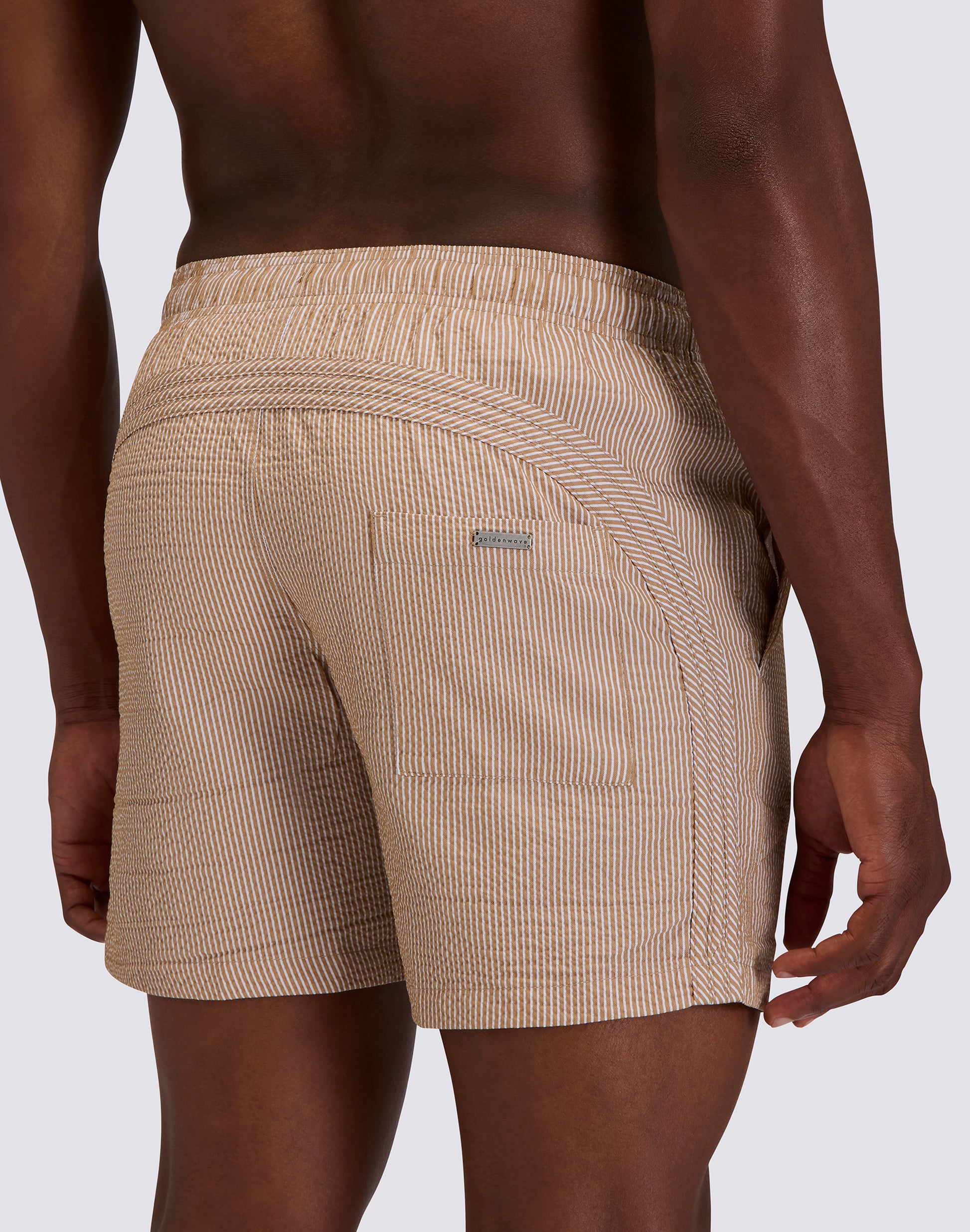 MAILLOT DE BAIN MILIEU À TAILLE ÉLASTIQUE POUR HOMME GOLDENWAVE, À RAYURES TEINTES EN FIL