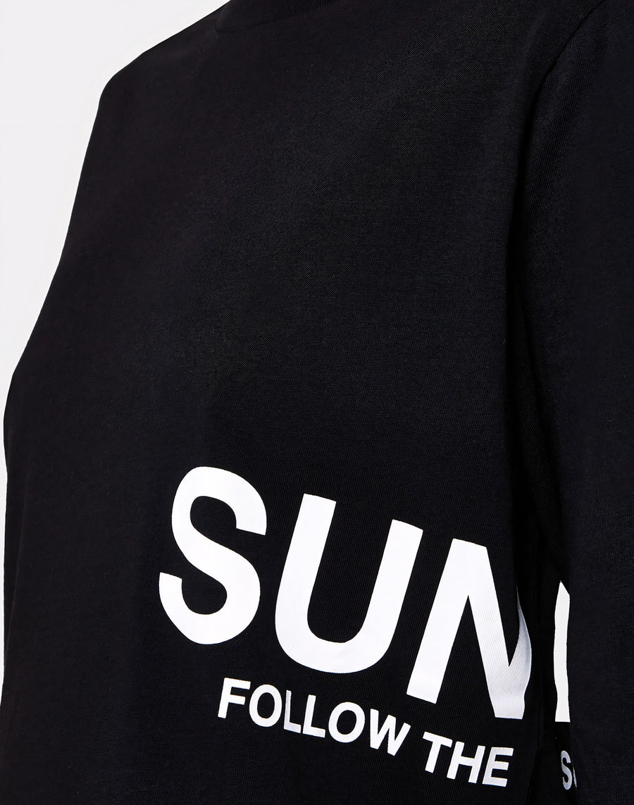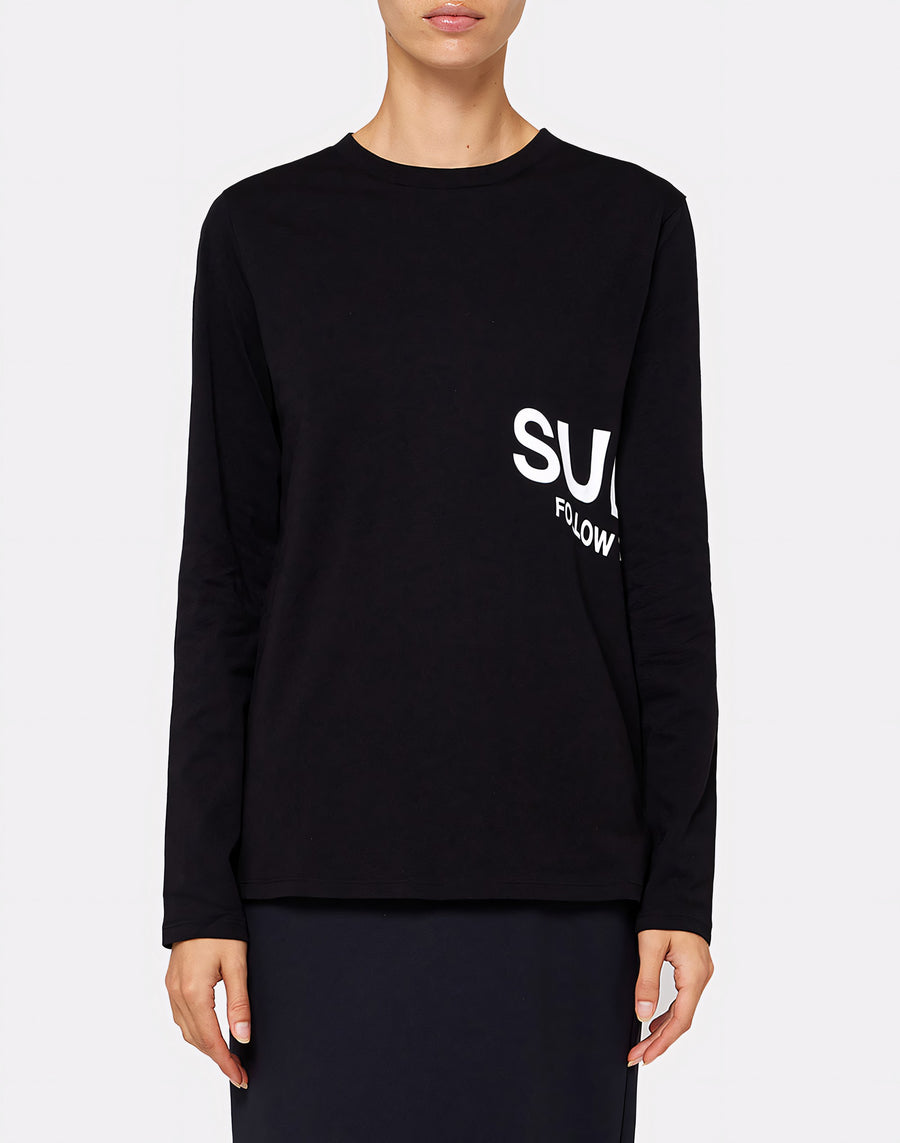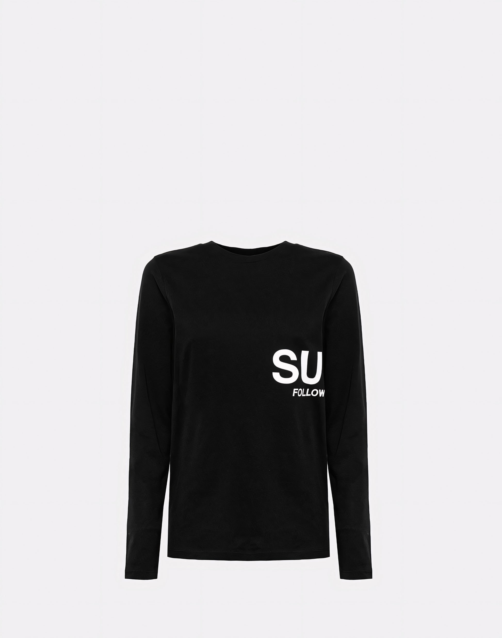 T-shirt évasé à manches longues pour femme avec slogan maxi Sundek, pour tous les looks décontractés et de loisirs. Doux et confortable, c'est le T-shirt à porter de saison en saison, seul ou comme base pour les pulls et les sweat-shirts : il vous accompagnera en voyage, en vacances et dans toutes les occasions où vous souhaitez porter un vêtement polyvalent avec de la personnalité.