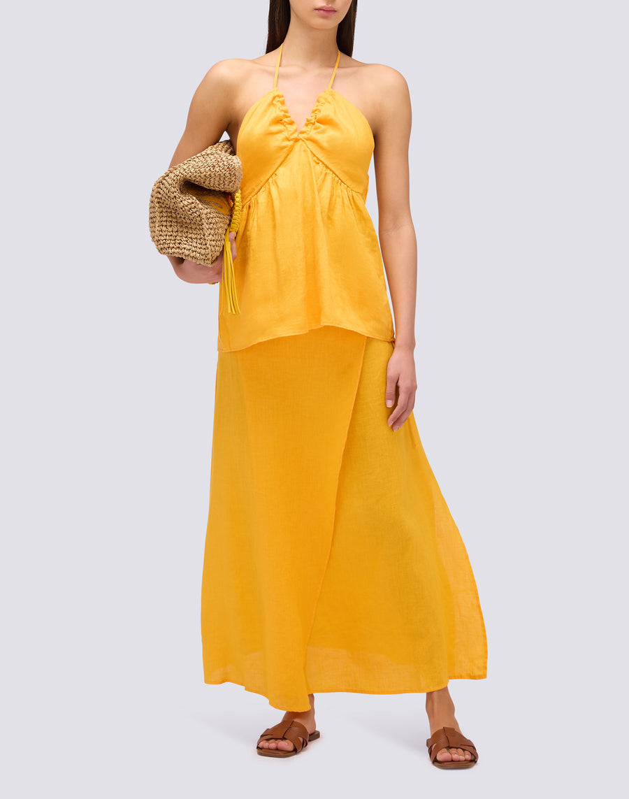 Ce long jupe en lin est parfait pour les journées chaudes grâce à sa fraîcheur et sa légèreté. Avec son tissu naturel, vous vous sentirez à l'aise et détendue toute la journée. Un must-have pour l'été !